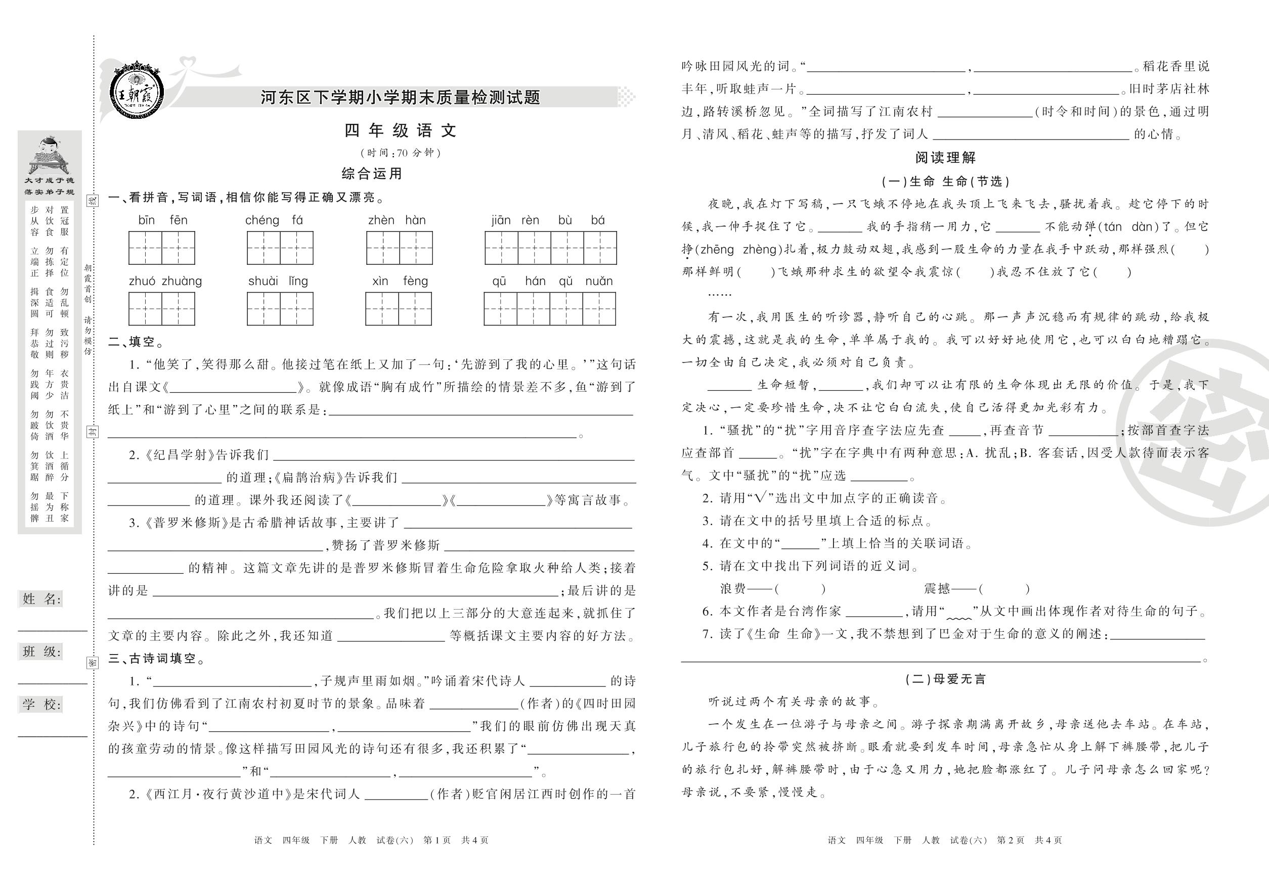 四年级语文人教版下册期末卷