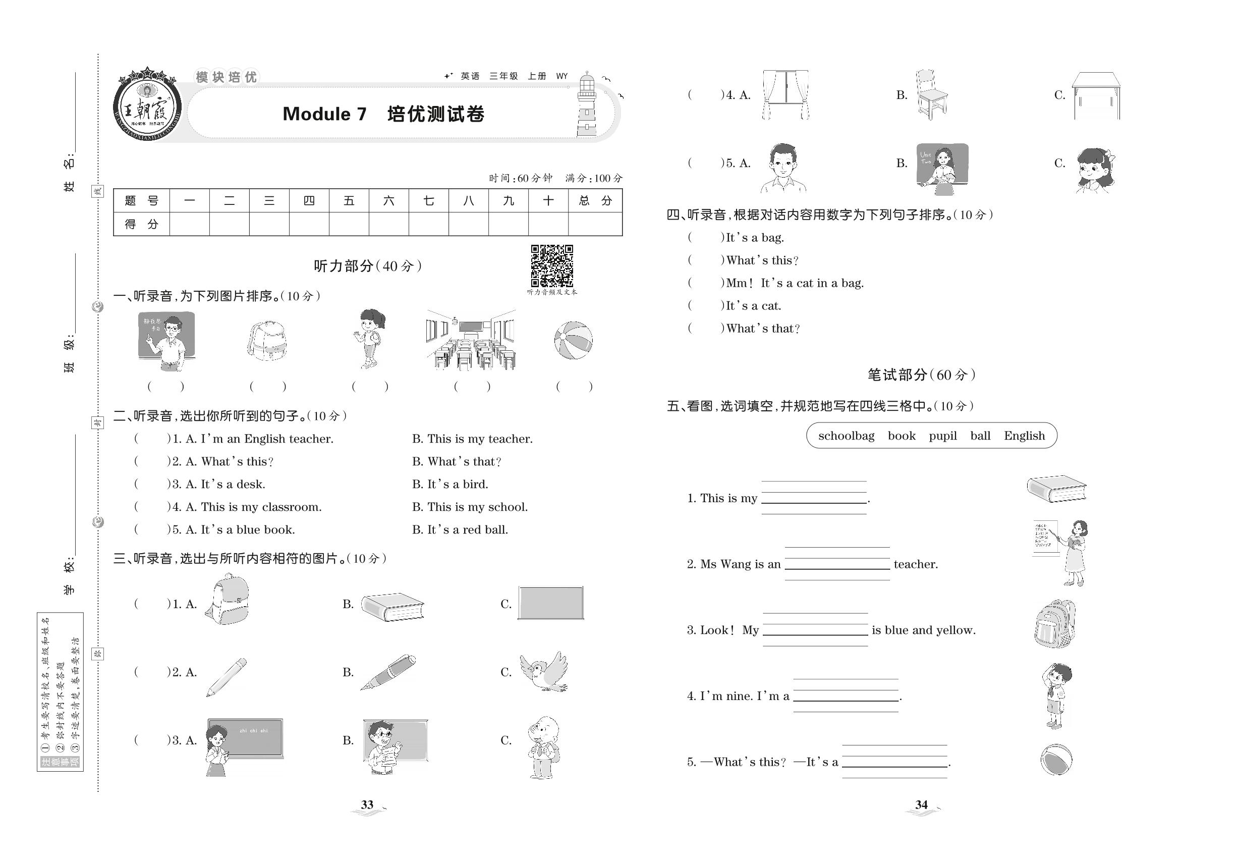2021上册三年级英语外研版 Module 7 培优测试卷