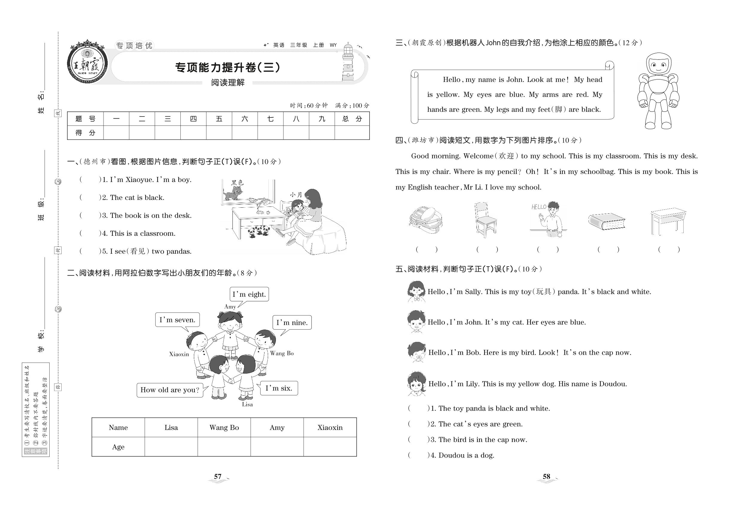 2021上册三年级英语外研版 专项能力提升卷(三) 阅读理解