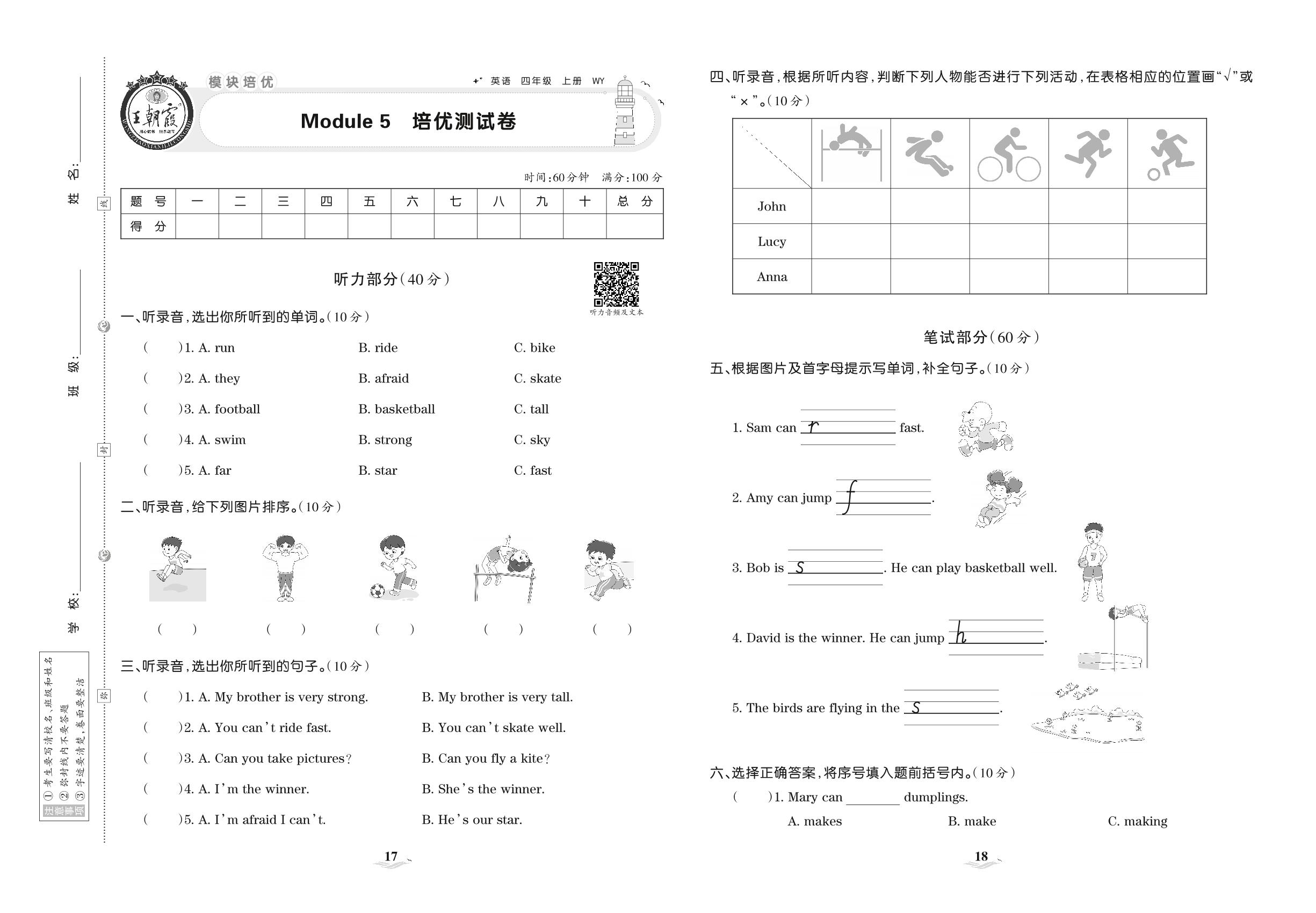 2021上册四年级英语外研版 Module 5 培优测试卷
