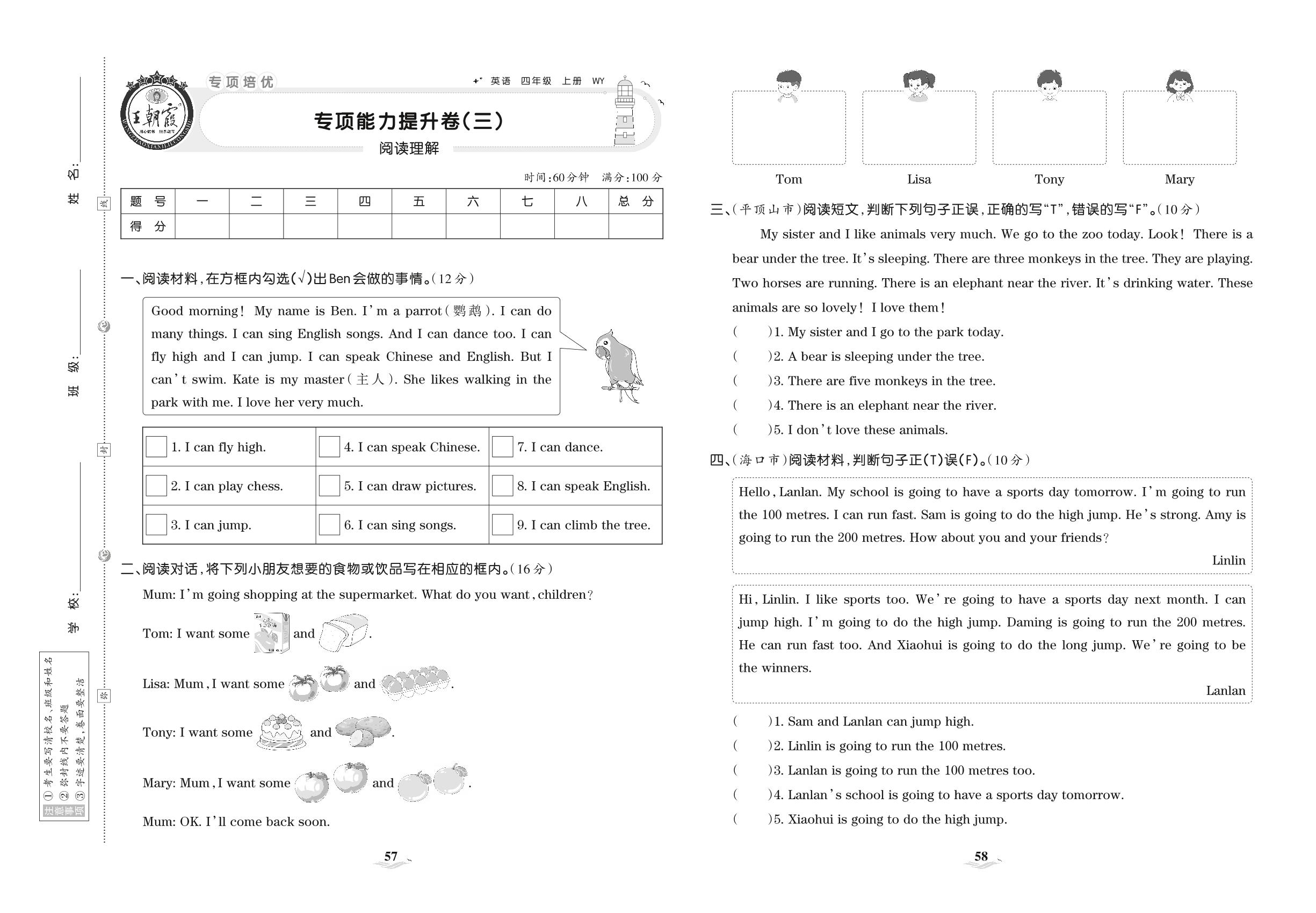 2021上册四年级英语外研版 专项能力提升卷(三) 阅读理解