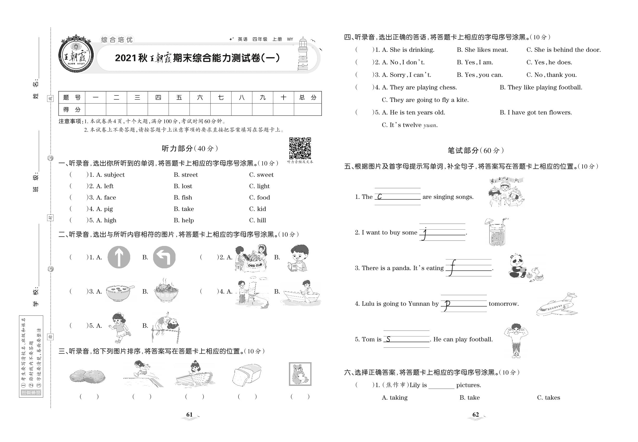 2021上册四年级英语外研版 王朝霞期末综合能力培优卷(一)