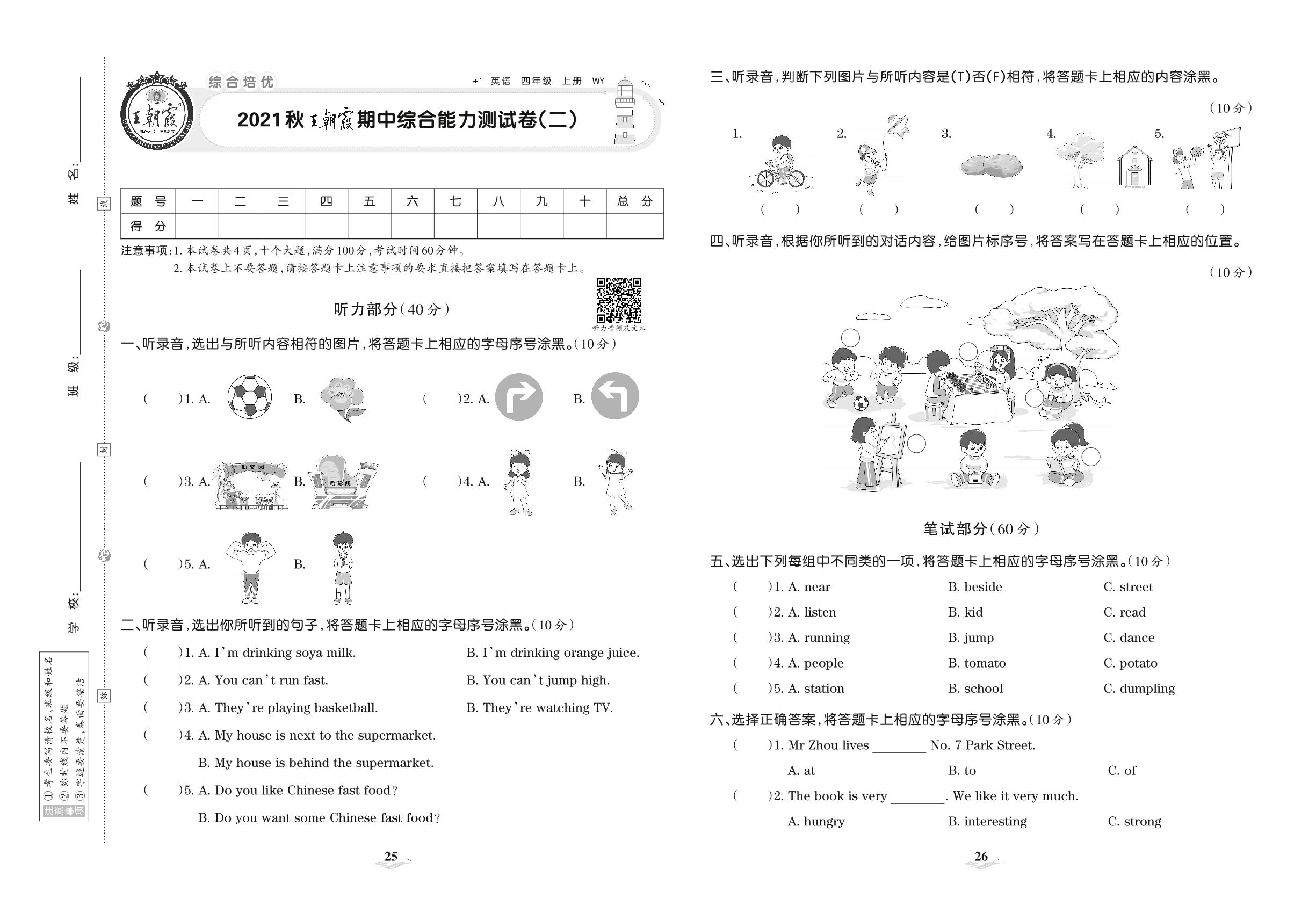 2021上册四年级英语外研版 王朝霞期中综合能力培优卷(二)