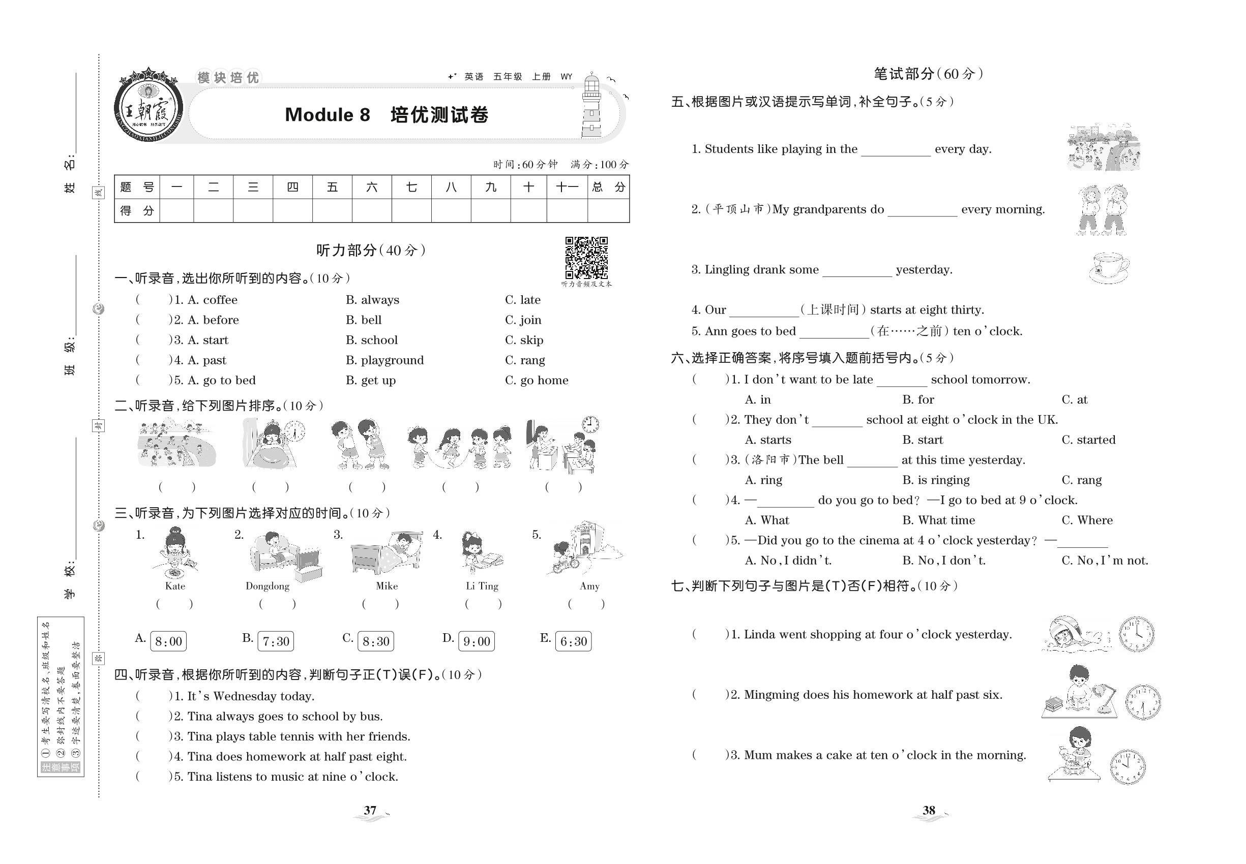 五年级英语外研版(三起始)上册单元卷