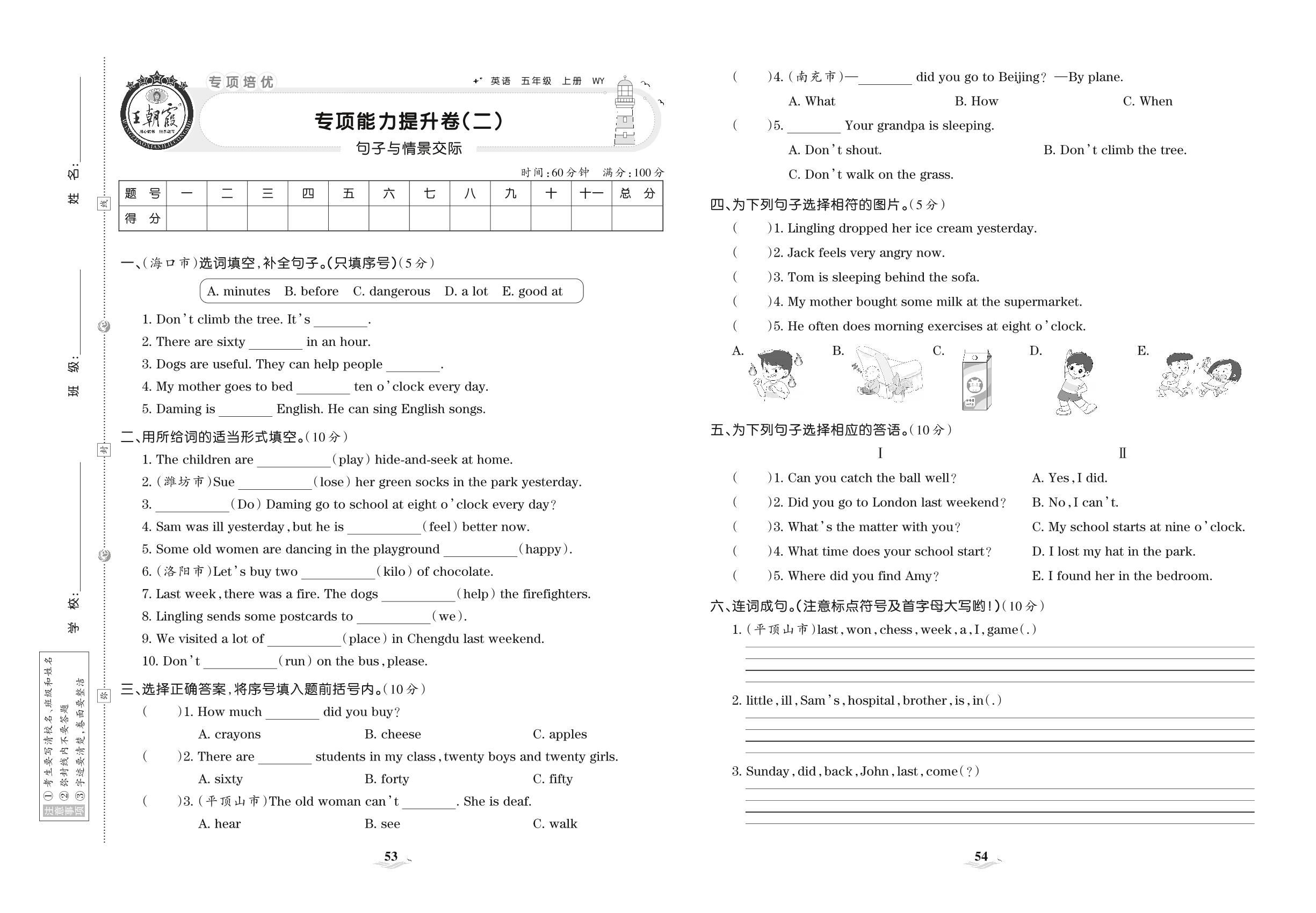 2021上册五年级英语外研版 专项能力提升卷(二) 句子与情景交际
