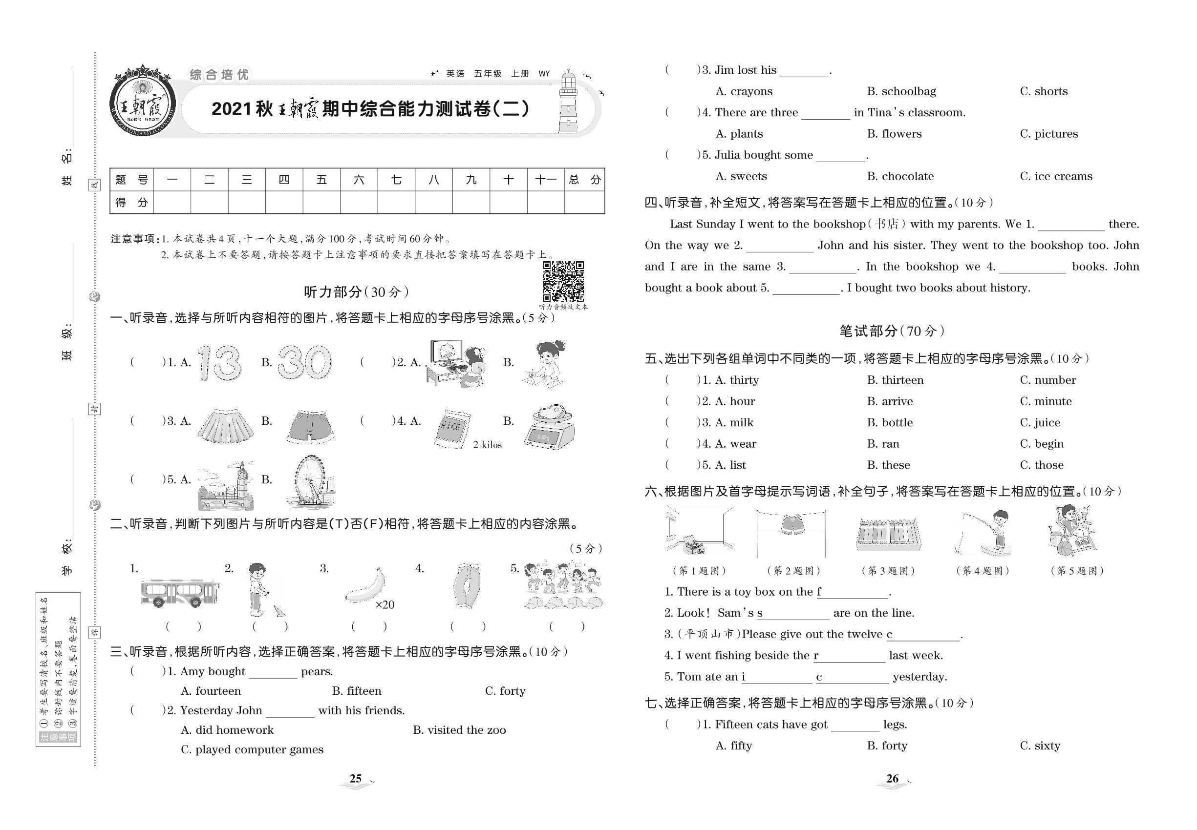2021上册五年级英语外研版 王朝霞期中综合能力培优卷(二)