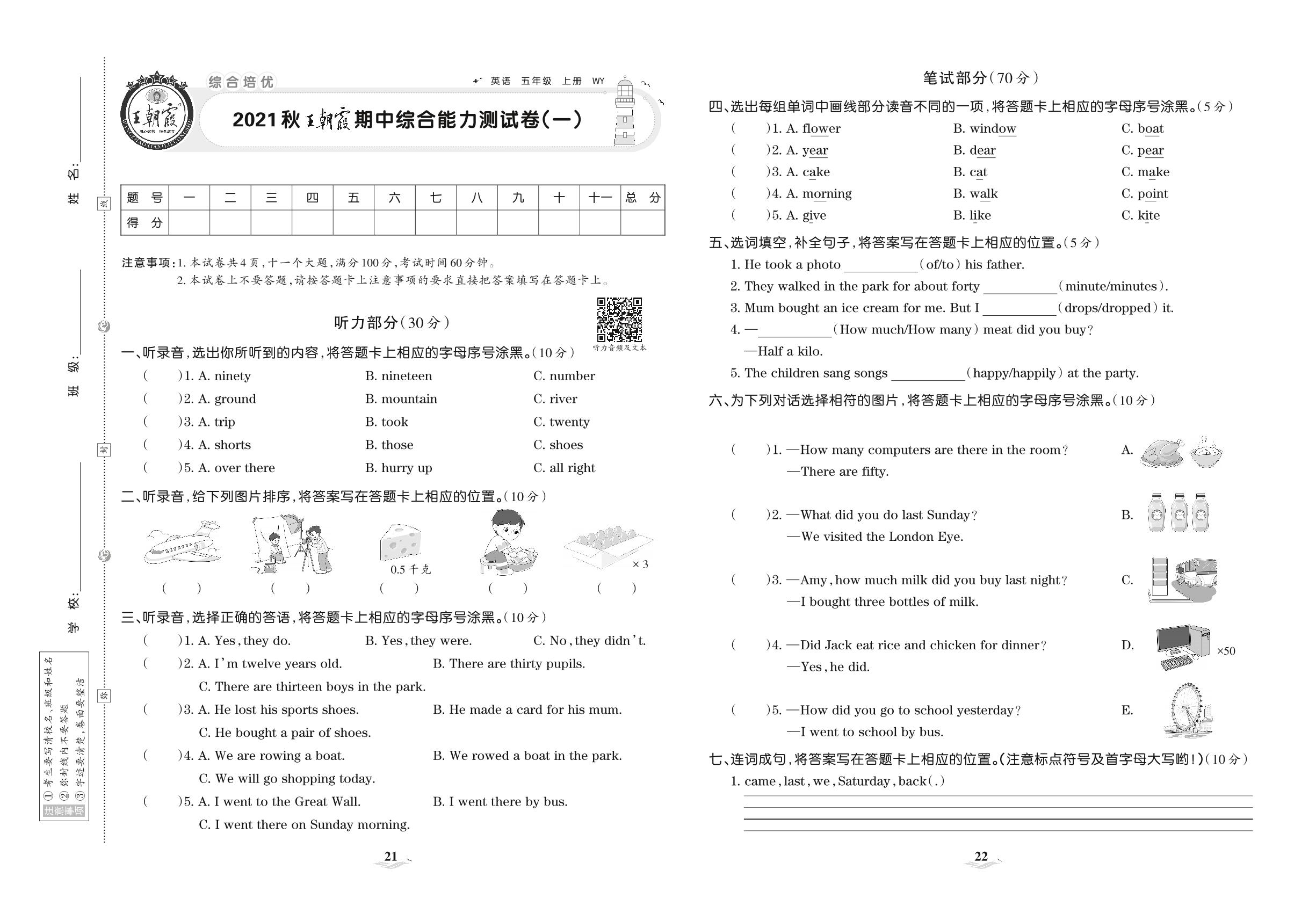 2021上册五年级英语外研版 王朝霞期中综合能力培优卷(一)