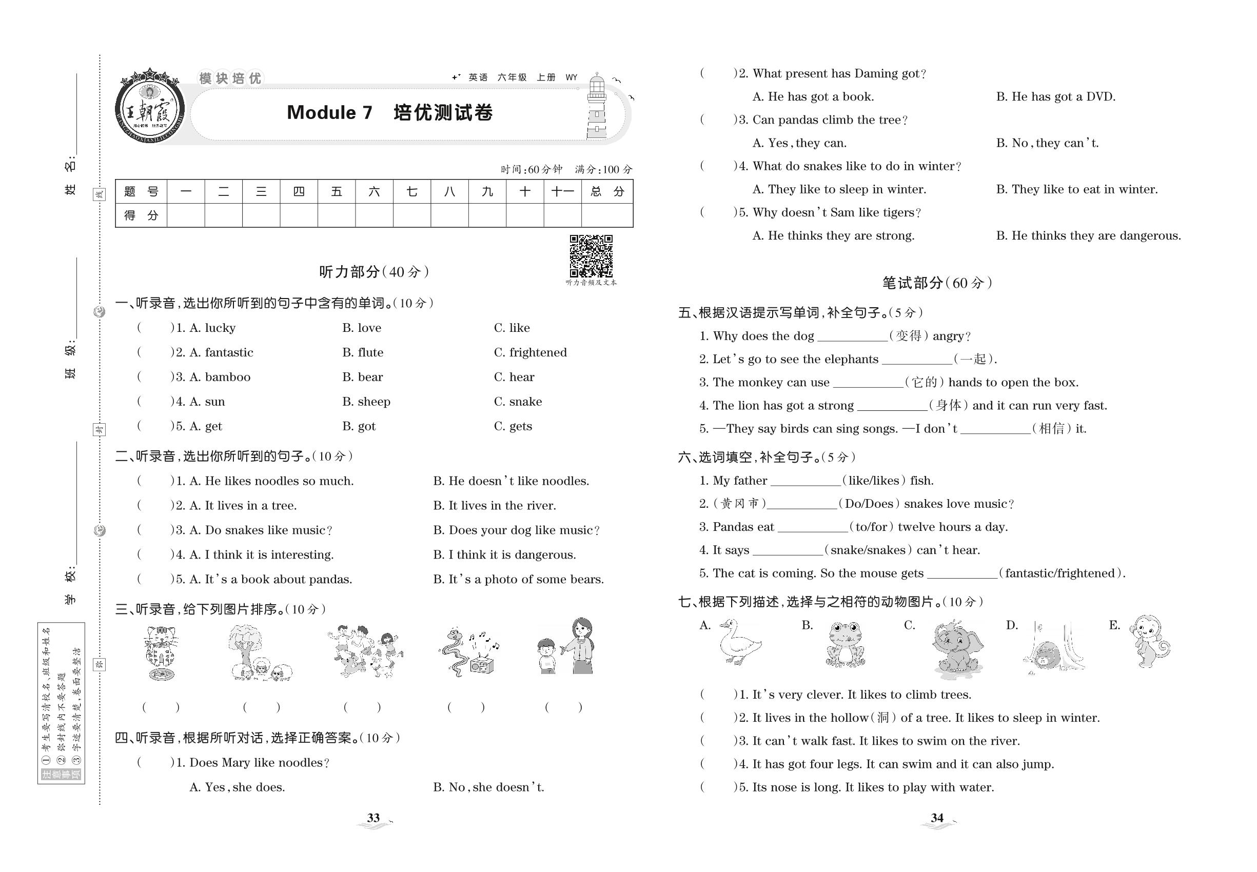 2021上册六年级英语外研版 Module 7 培优测试卷