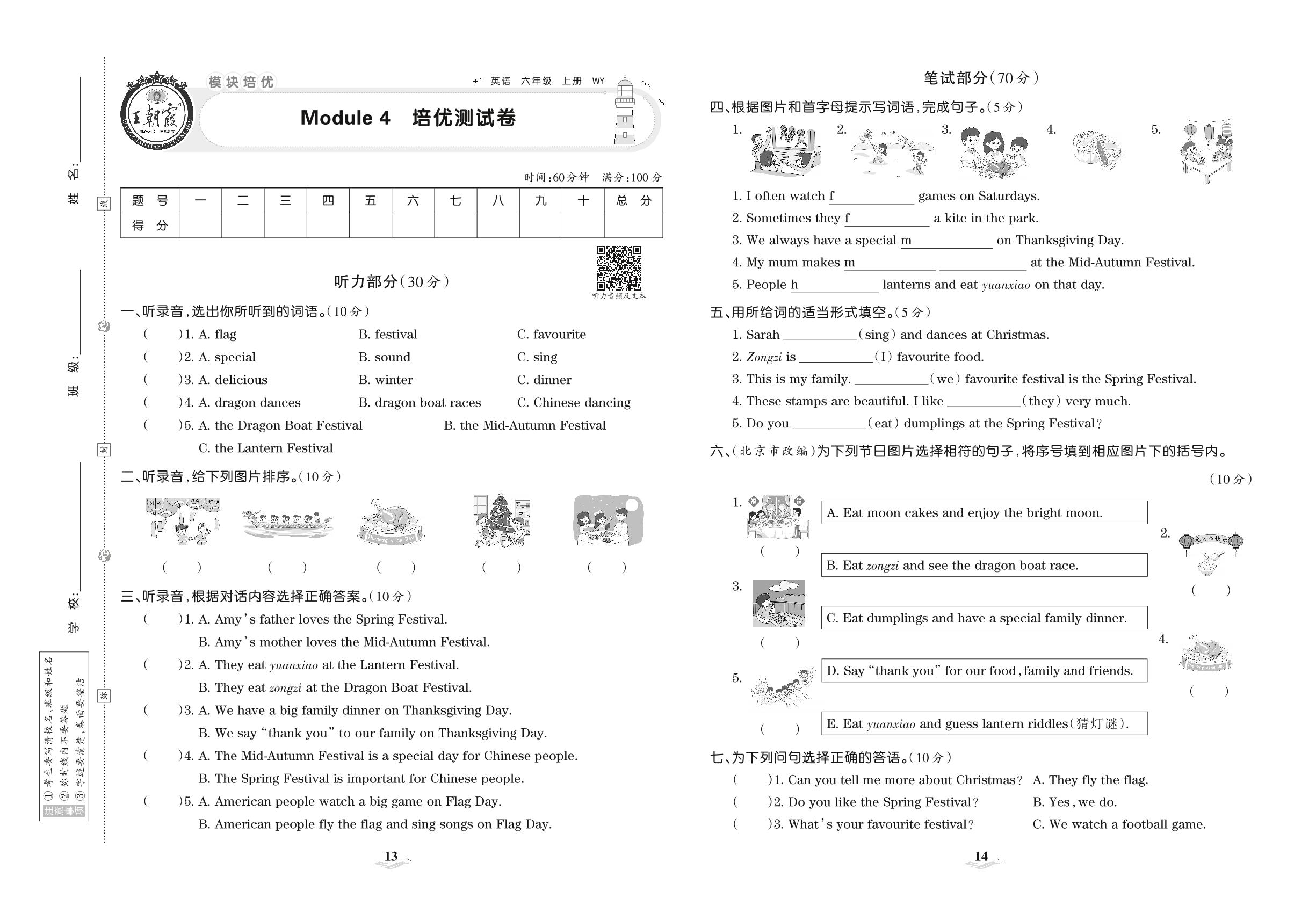 六年级英语外研版(三起始)上册单元卷