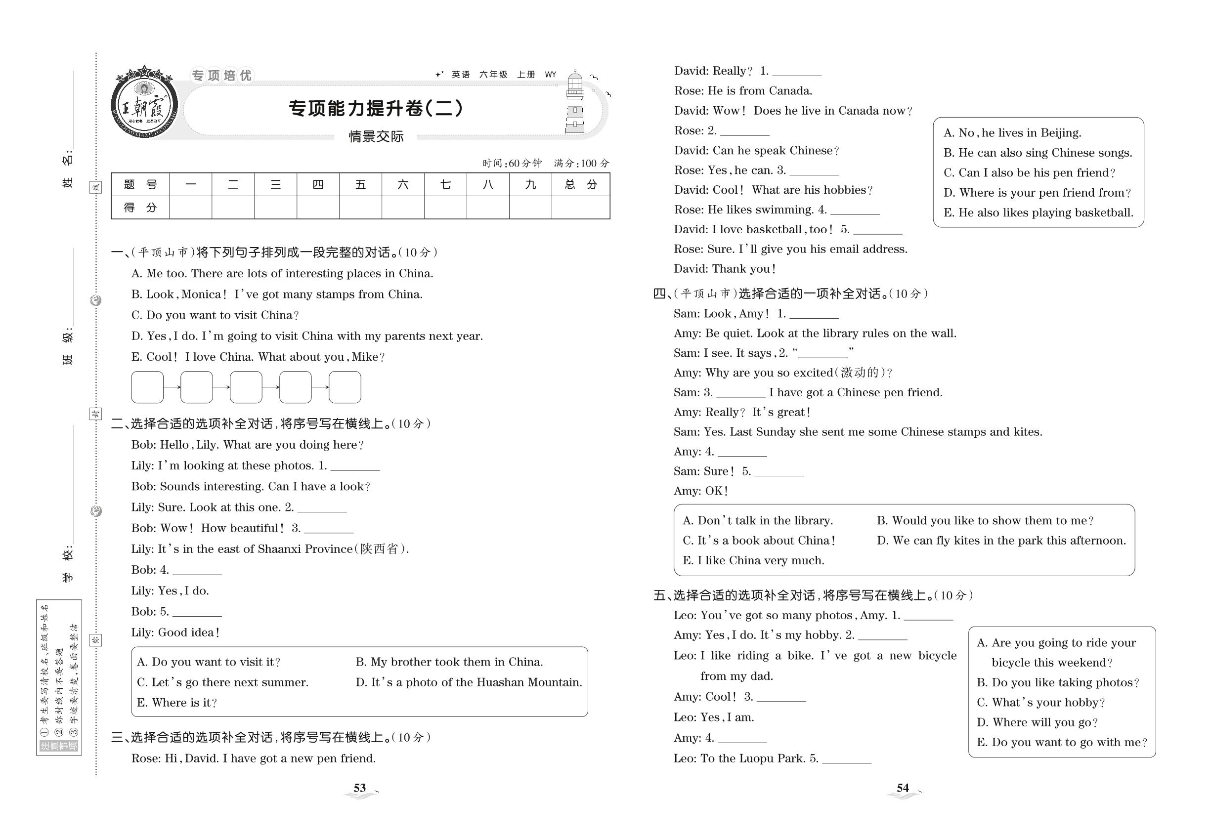 2021上册六年级英语外研版 专项能力提升卷(二) 情景交际