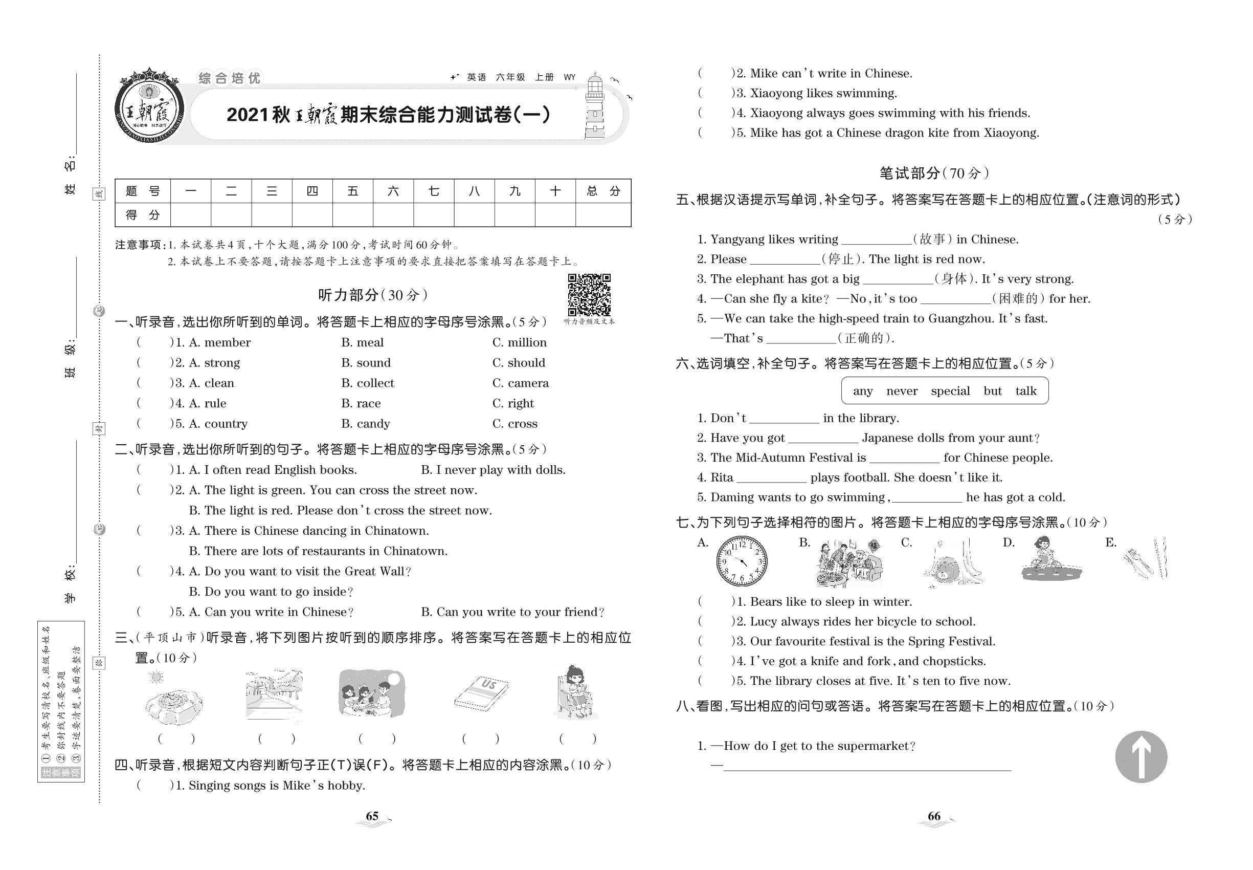 2021上册六年级英语外研版 王朝霞期末综合能力培优卷(一)