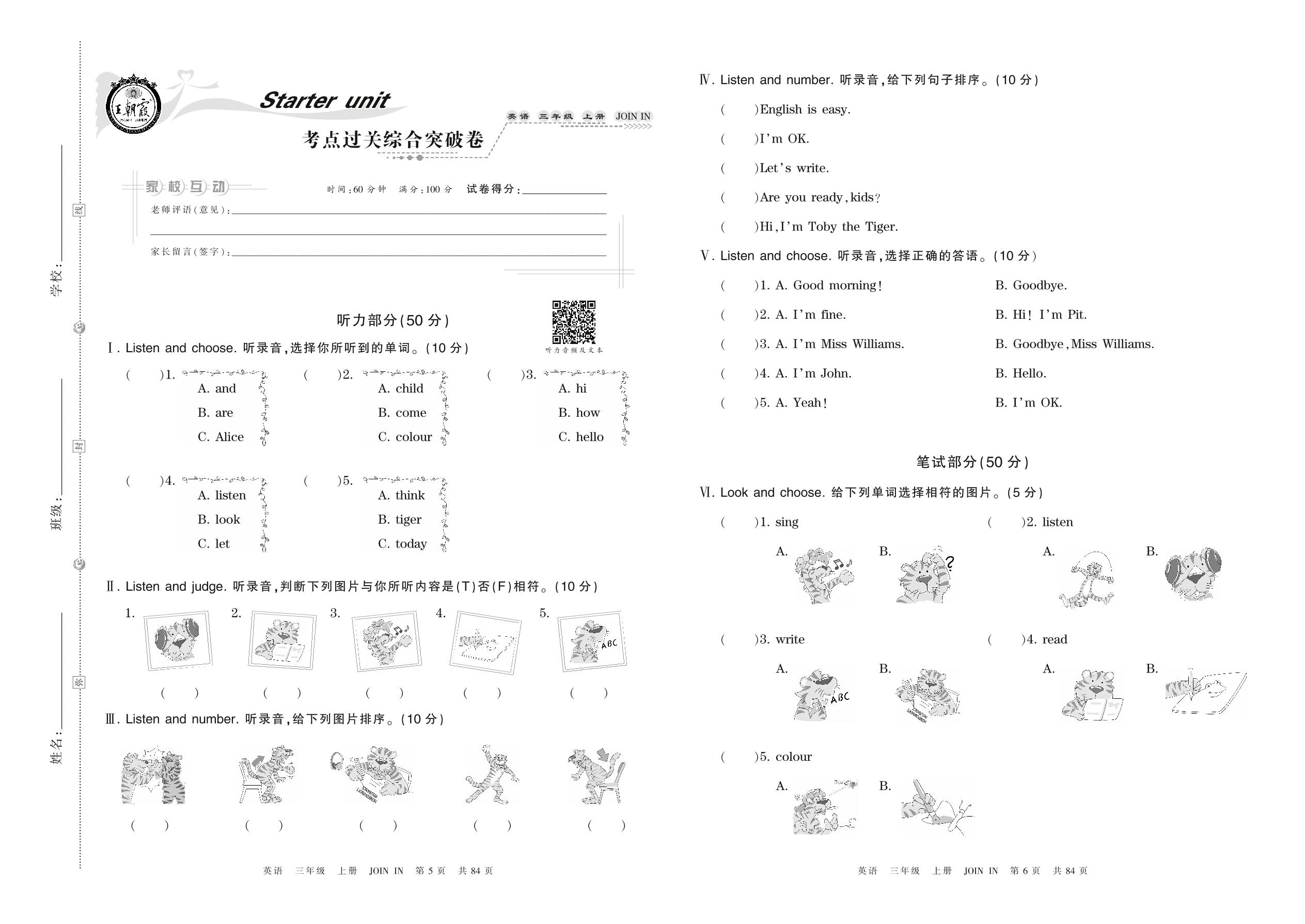 2021上册三年级英语剑桥版 Starter unit 考点过关综合突破卷