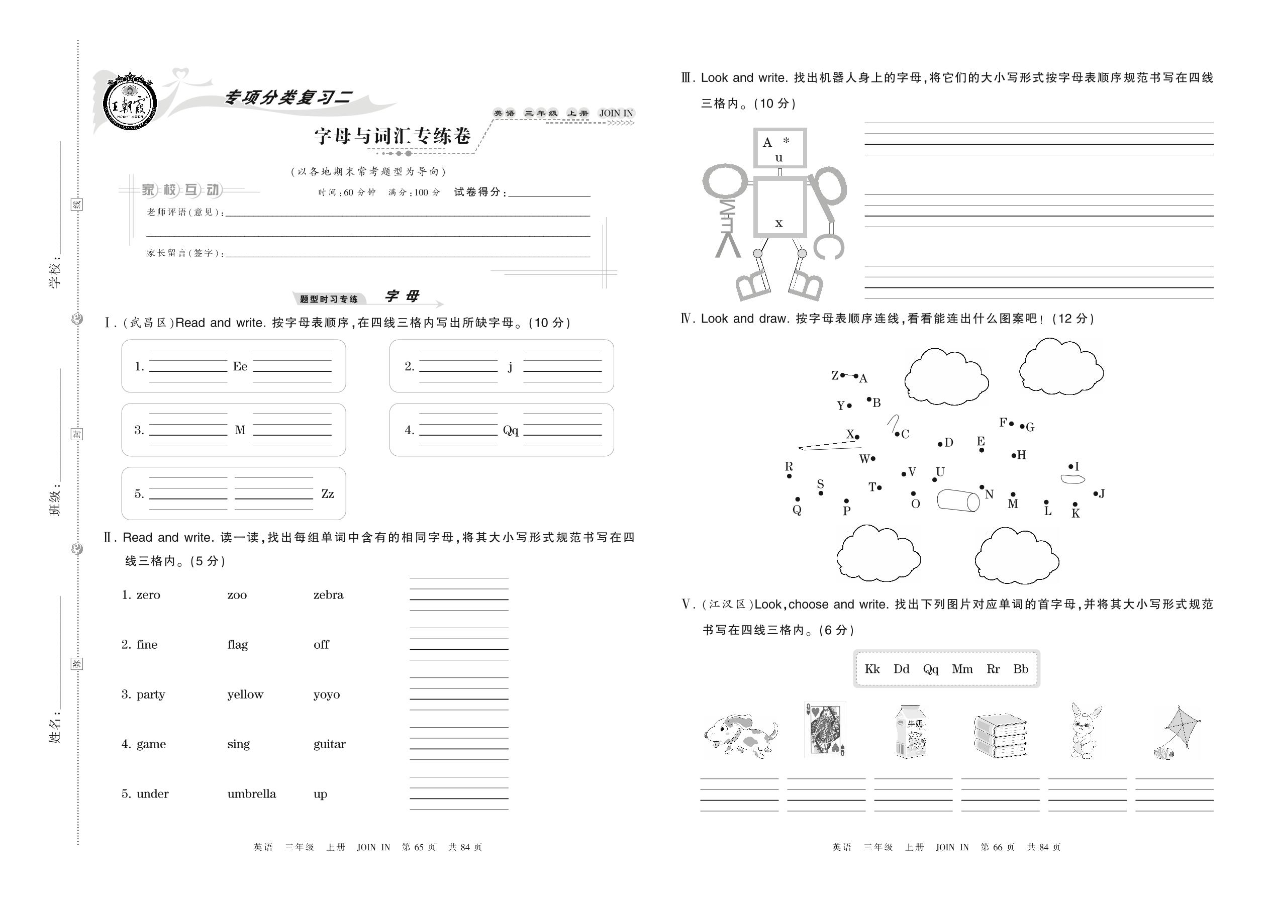 2021上册三年级英语剑桥版 字母与词汇专练卷
