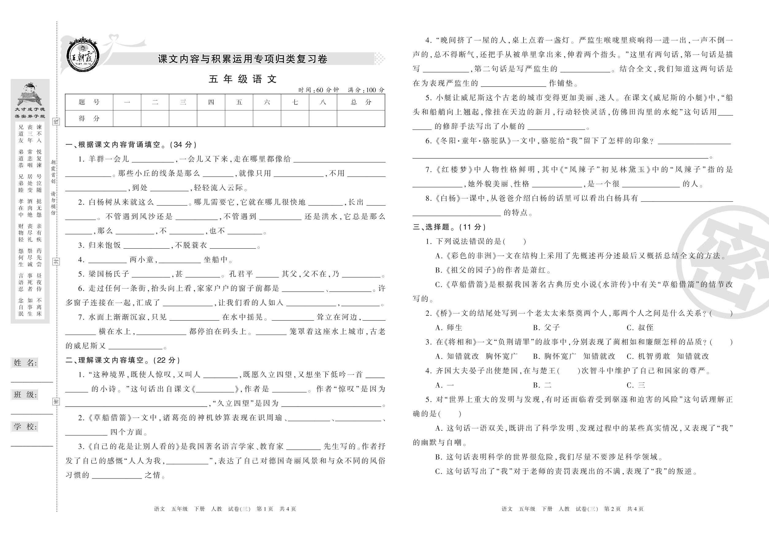 王朝霞期末专项卷五年级下册语文(人教版)_R210801211807【3】