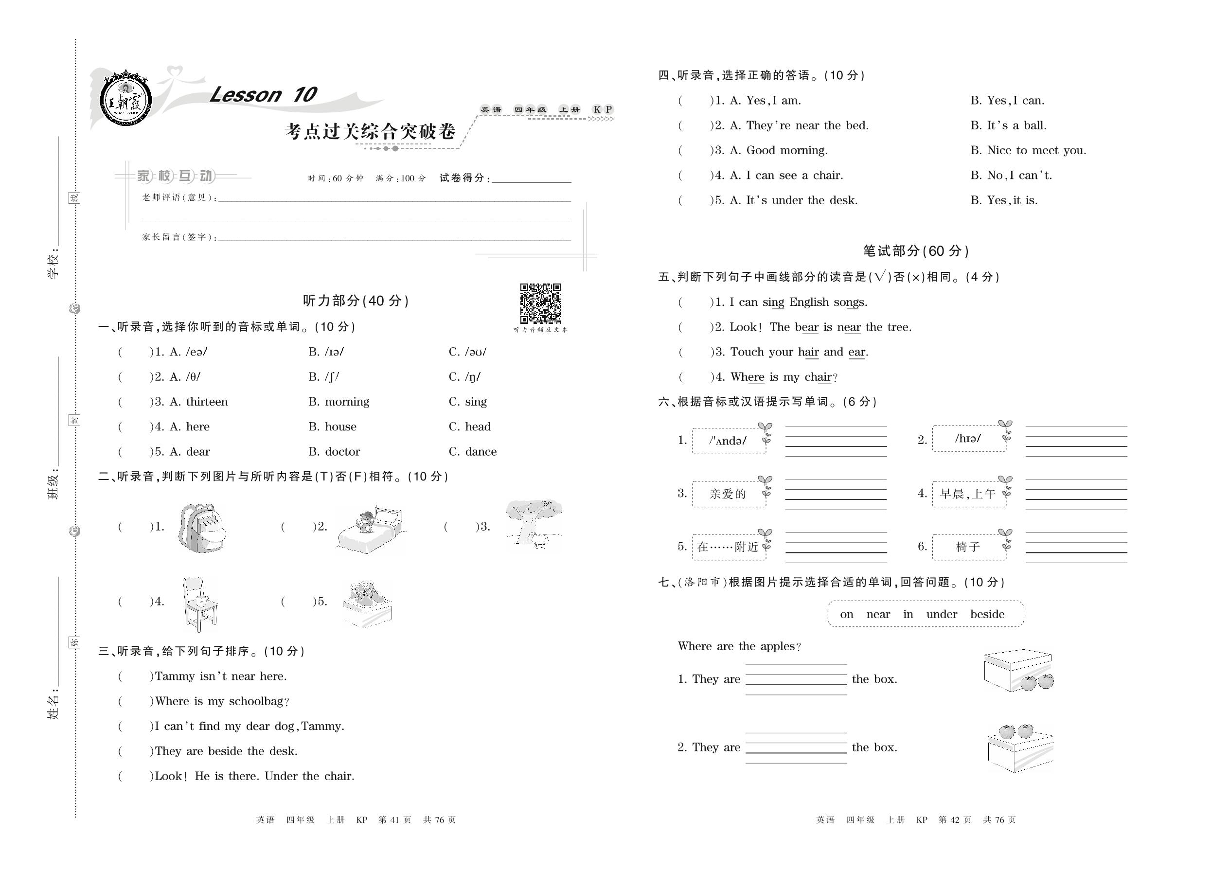 2021上册四年级英语科普版 Lesson 10 考点过关综合突破卷
