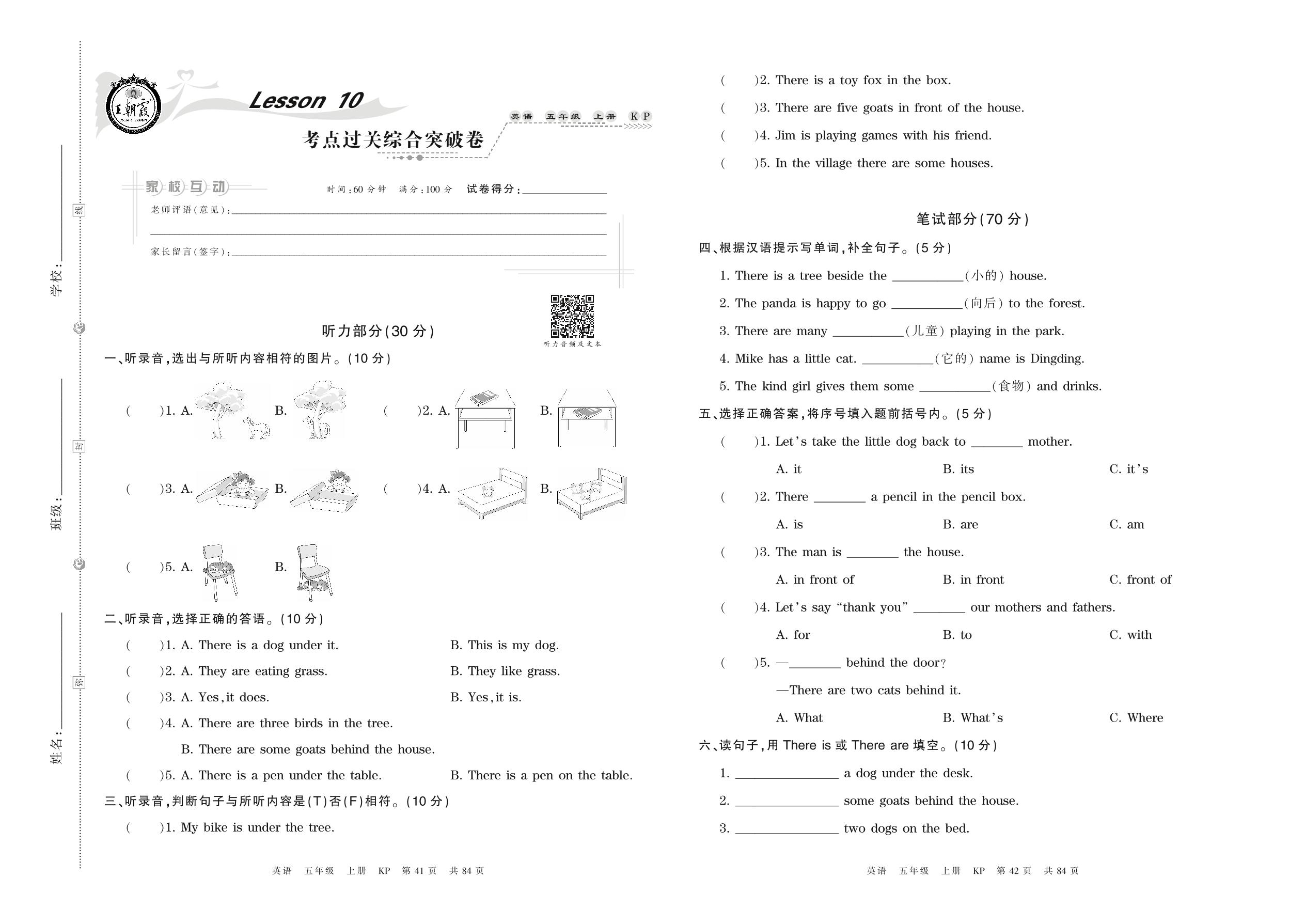 2021上册五年级英语科普版 Lesson 10 考点过关综合突破卷