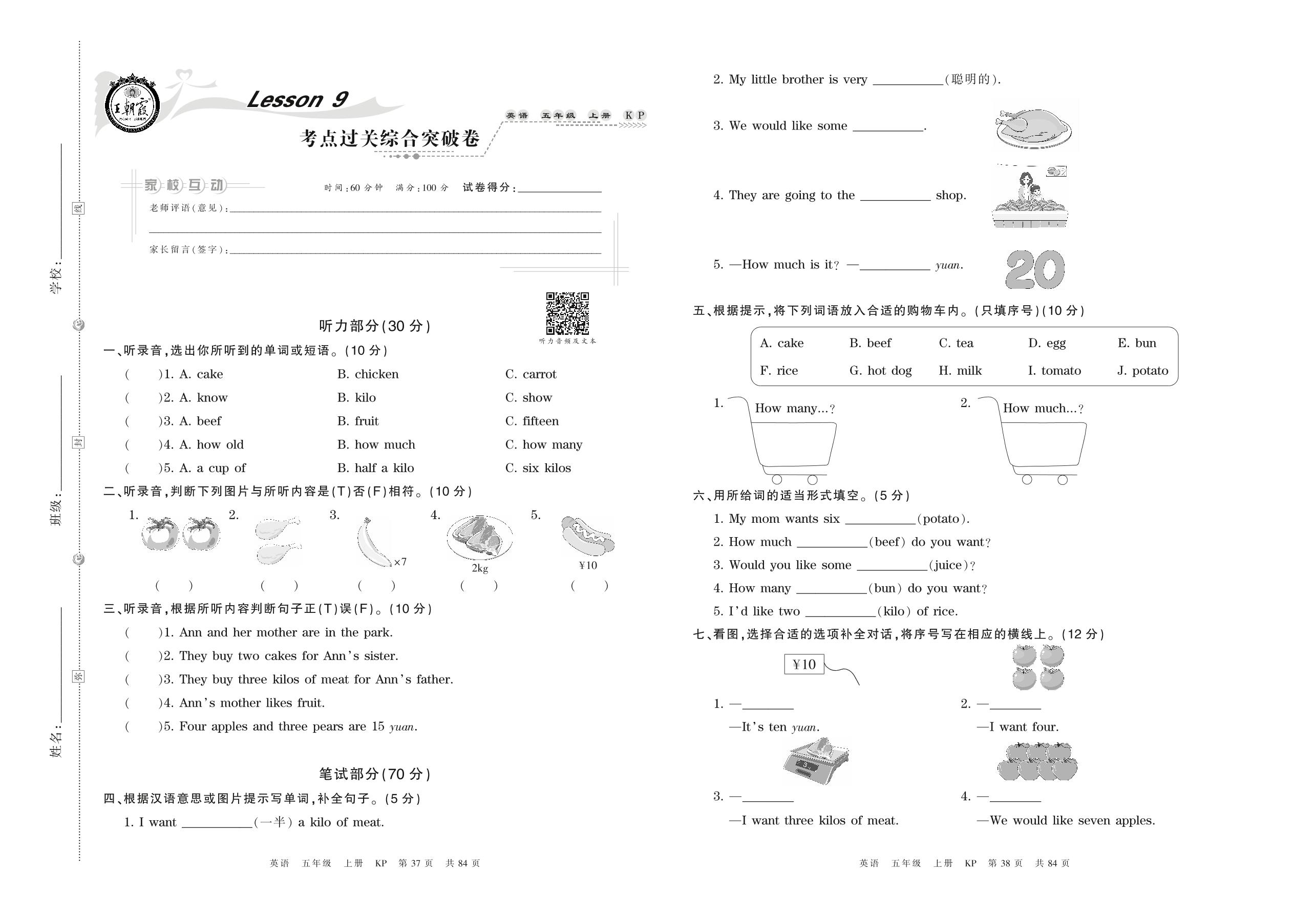 2021上册五年级英语科普版 Lesson 9 考点过关综合突破卷