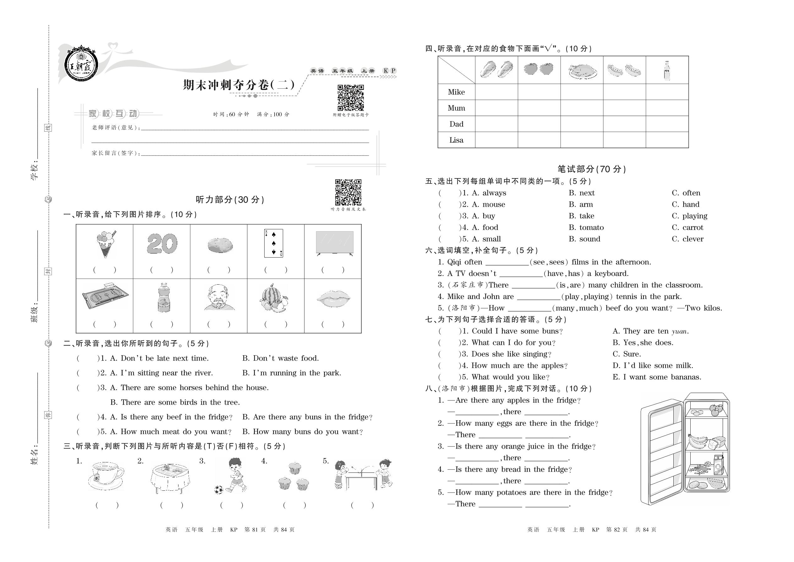 2021上册五年级英语科普版 期末冲刺夺分卷(二)