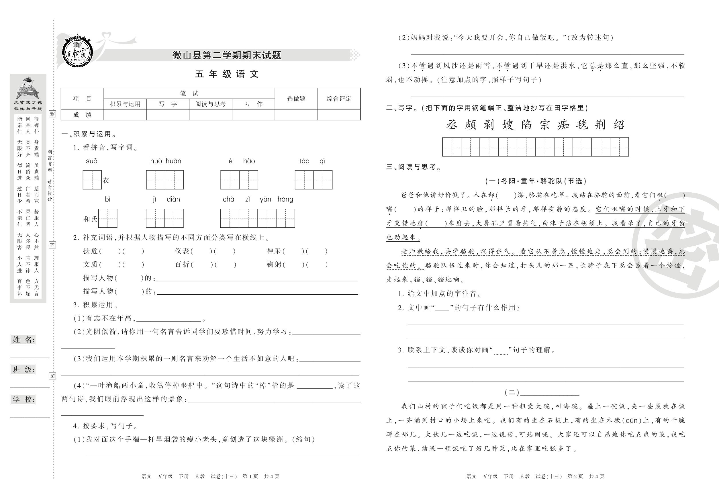 2015-2016学年第二学期济宁市微山县五年级语文试卷(人教版)【13】
