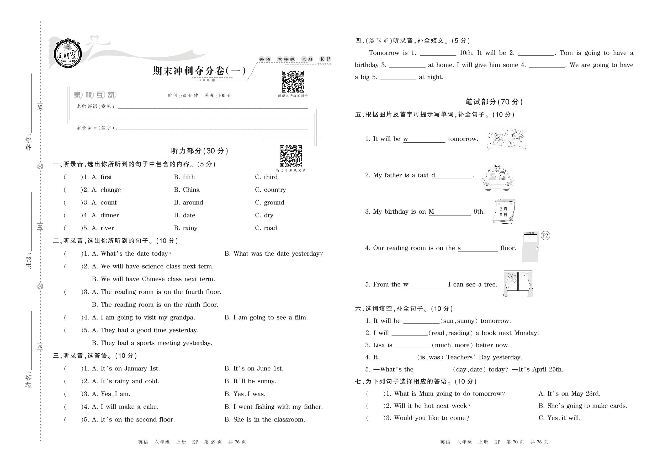 2021上册六年级英语科普版 期末冲刺夺分卷(一)