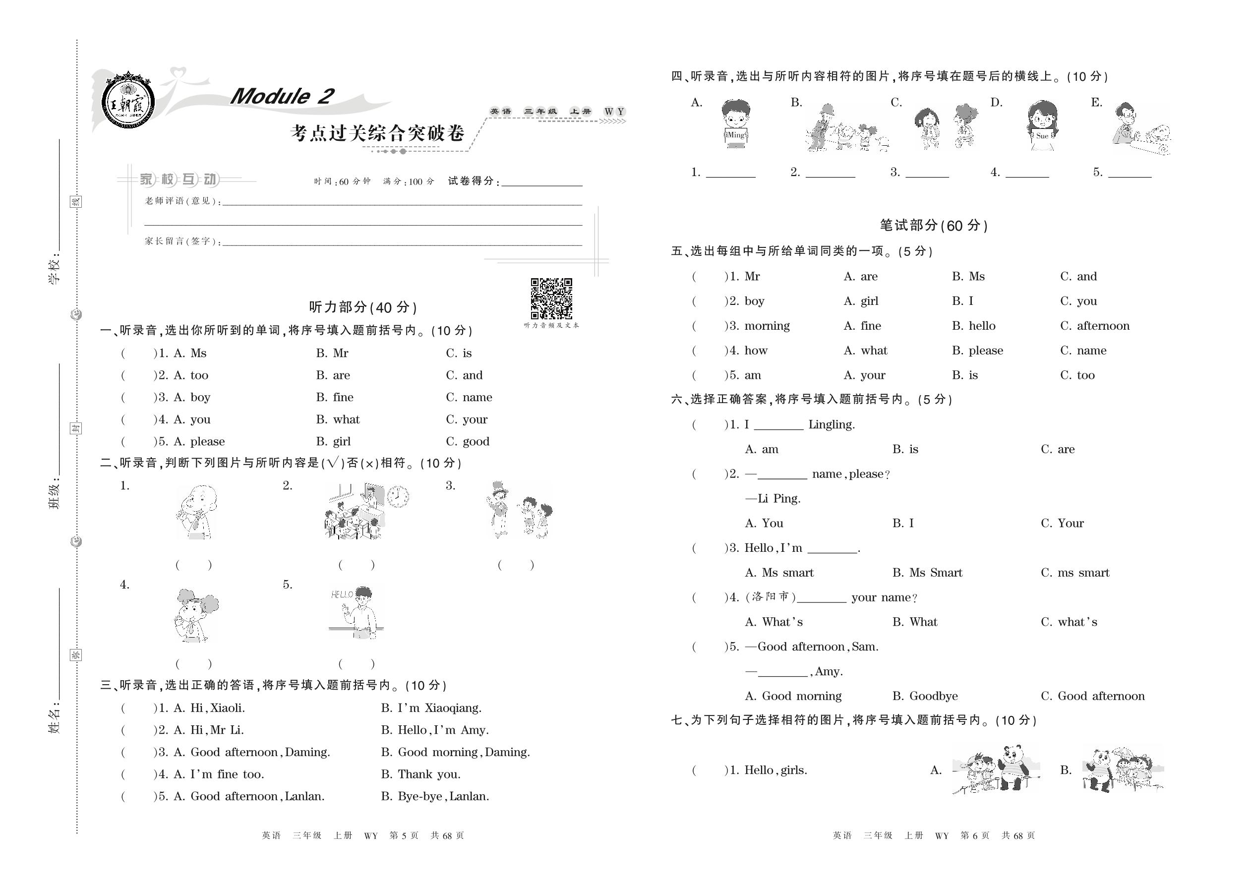 三年级英语外研版(三起始)上册单元卷