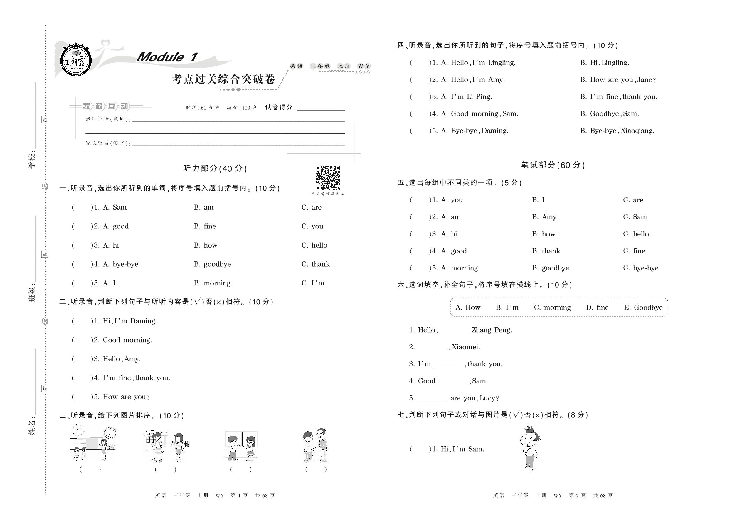 2021上册三年级英语外研版 Module 1 考点过关综合突破卷