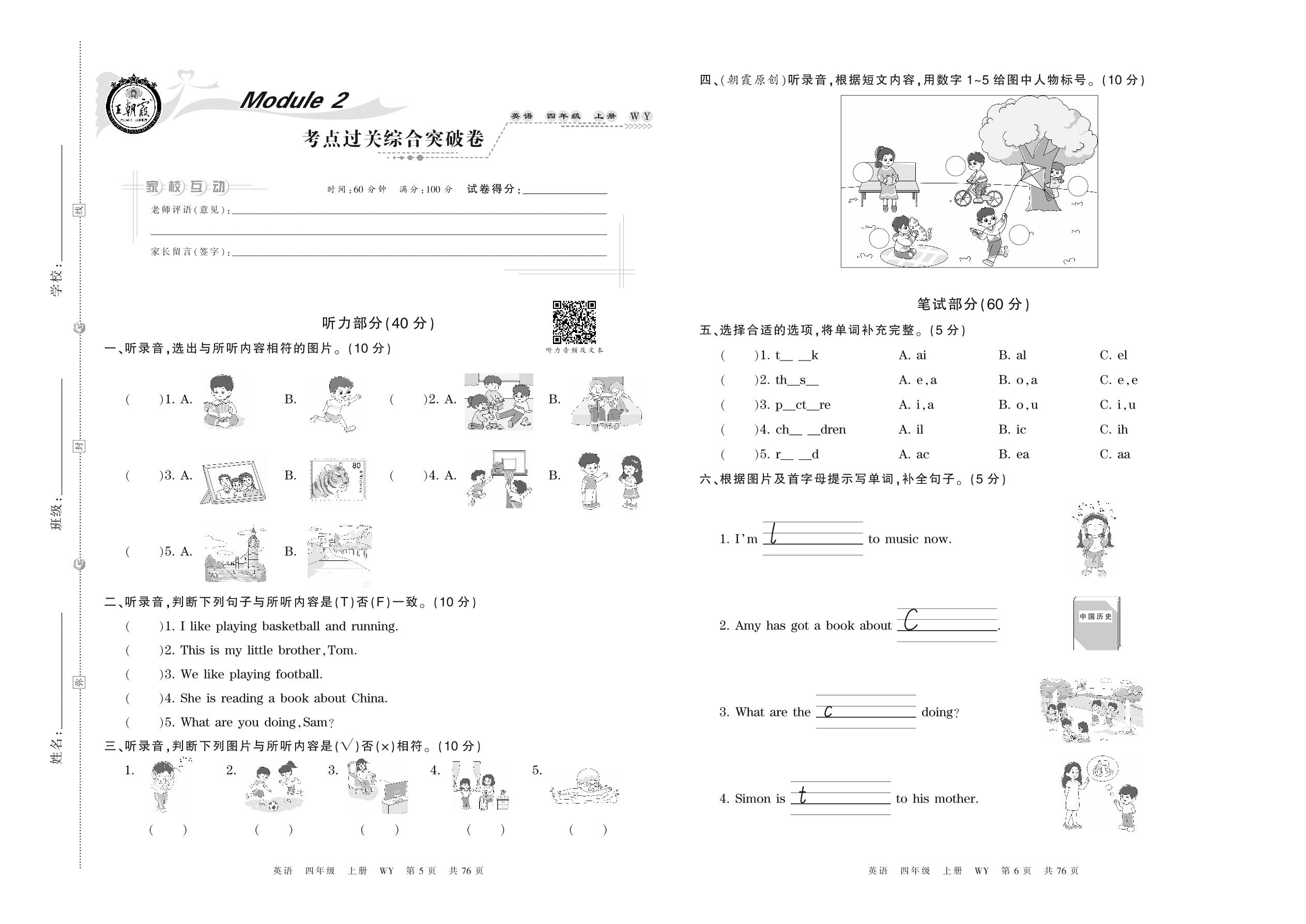 2021上册四年级英语外研版 Module 2 考点过关综合突破卷