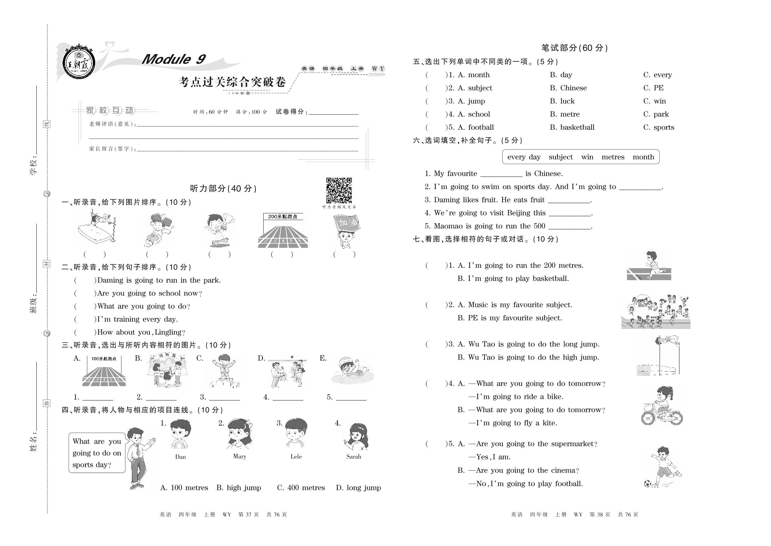 2021上册四年级英语外研版 Module 9 考点过关综合突破卷