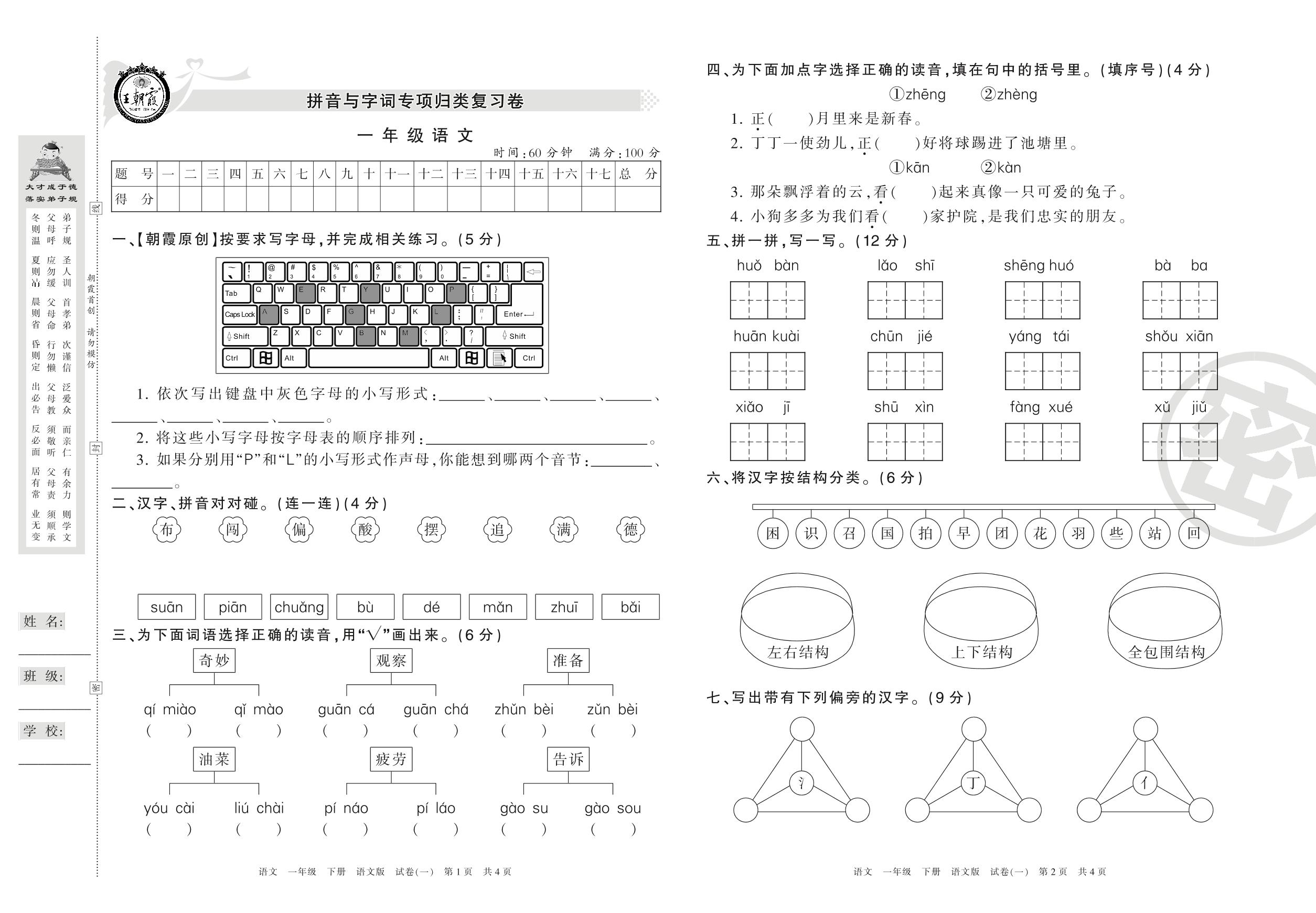 王朝霞期末专项卷一年级下册语文(语文版)【1】