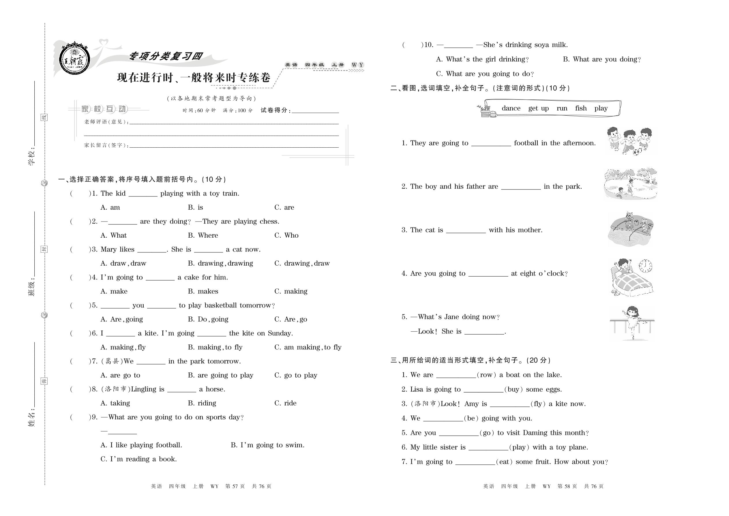 2021上册四年级英语外研版 现在进行时、一般将来时专练卷