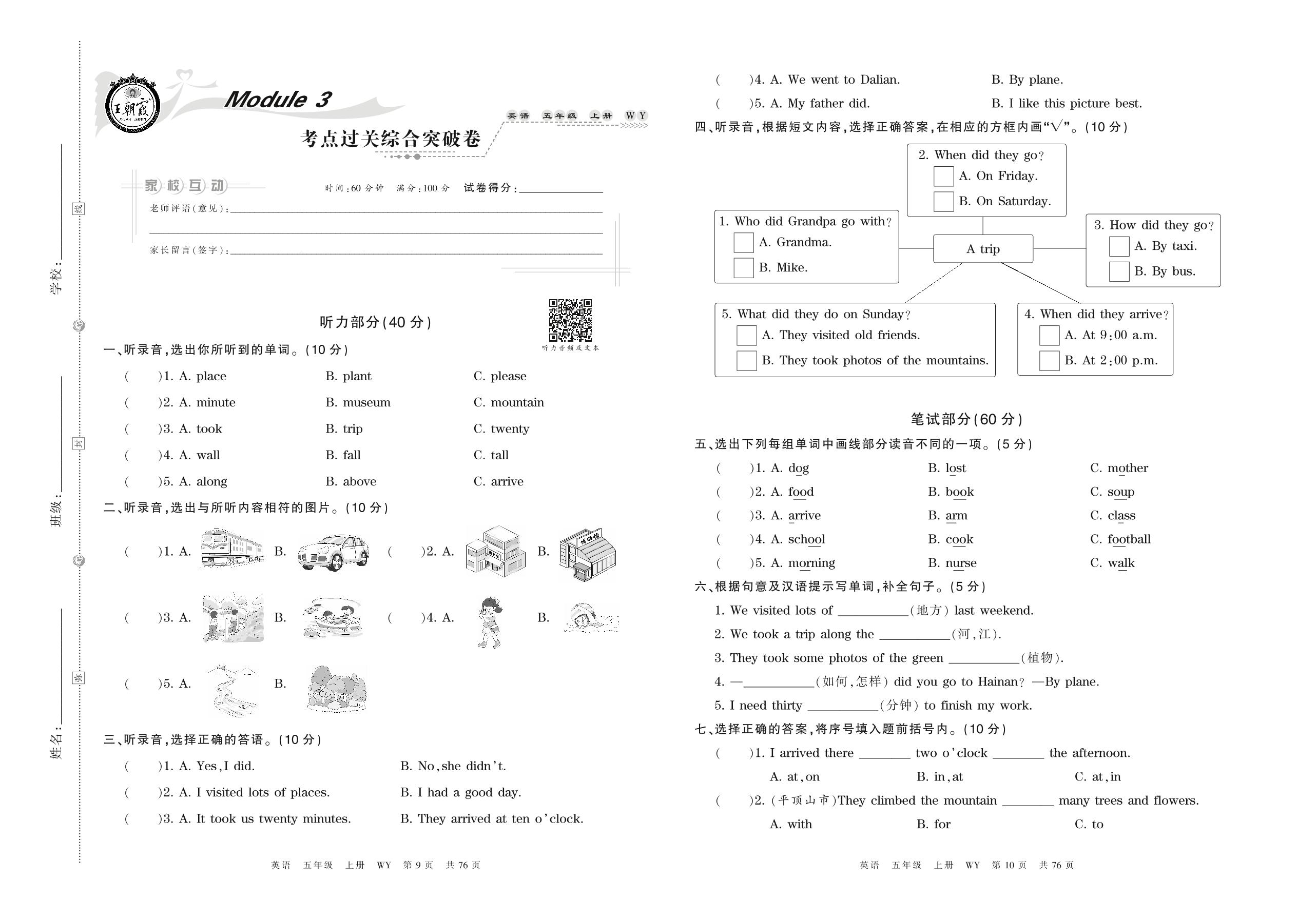 2021上册五年级英语外研版 Module 3 考点过关综合突破卷