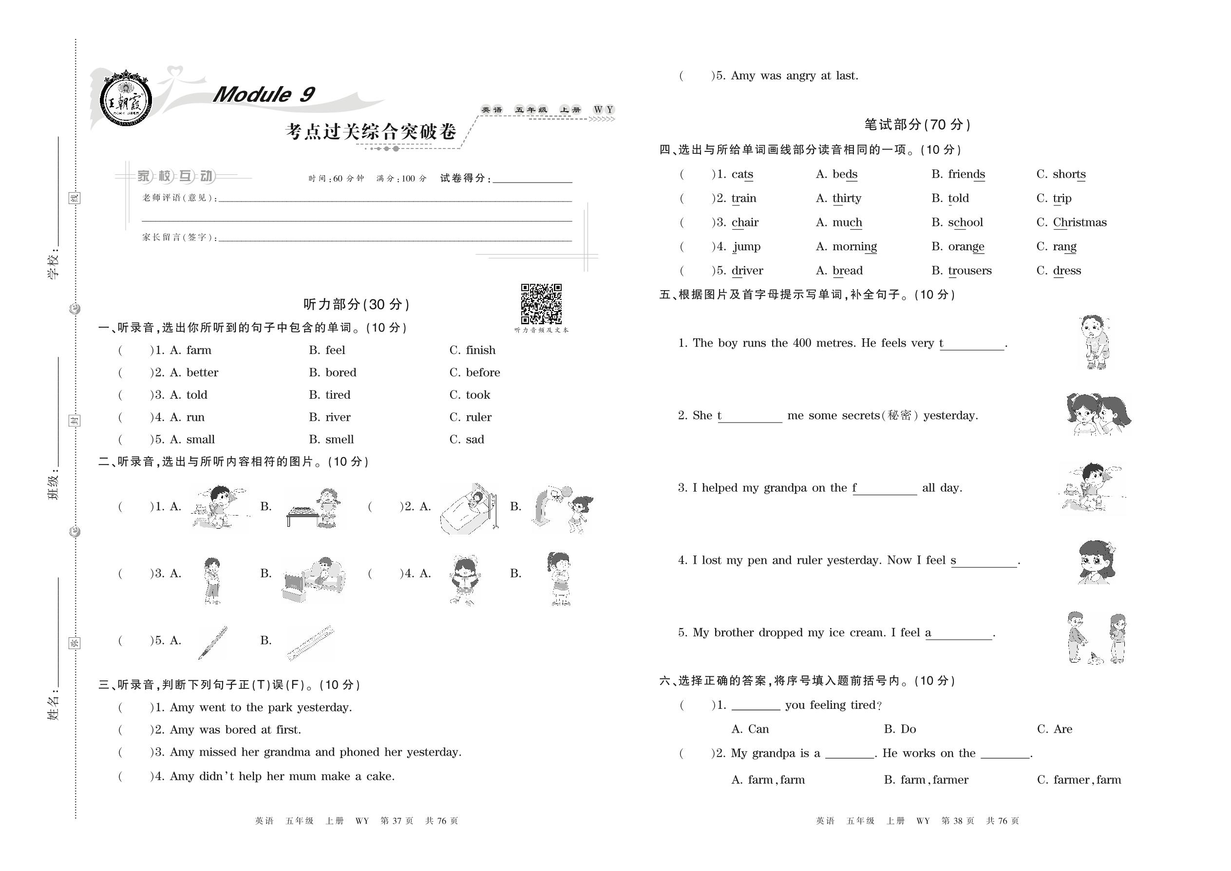 五年级英语外研版(三起始)上册单元卷