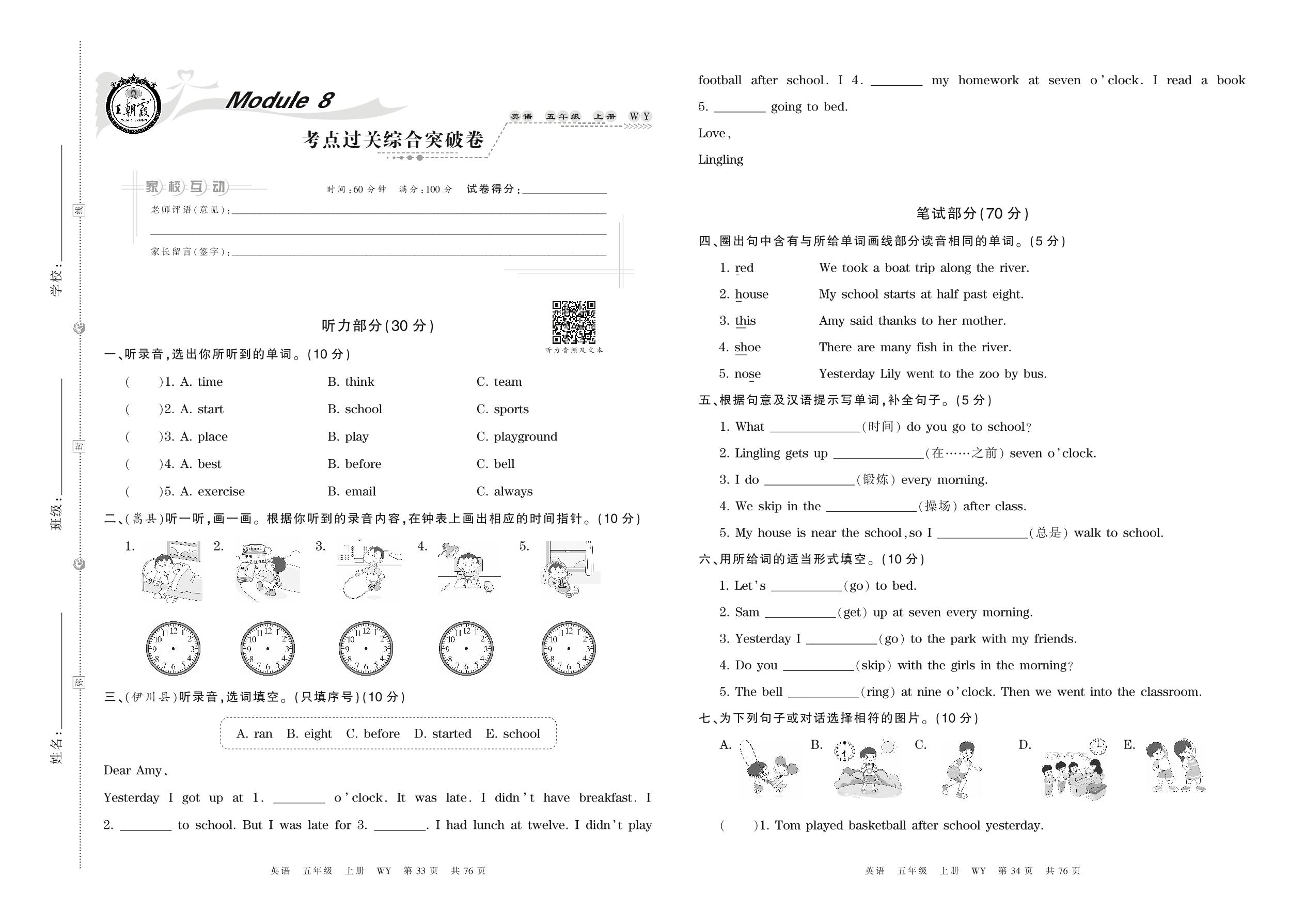 五年级英语外研版(三起始)上册单元卷
