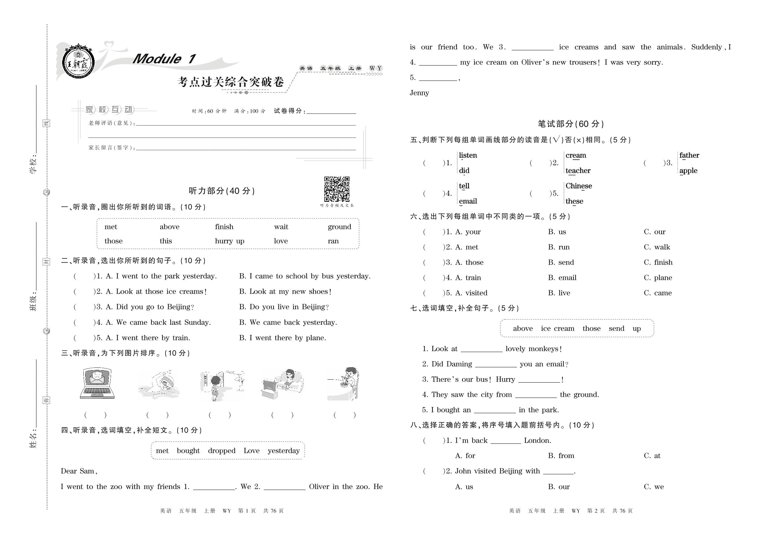 2021上册五年级英语外研版 Module 1 考点过关综合突破卷