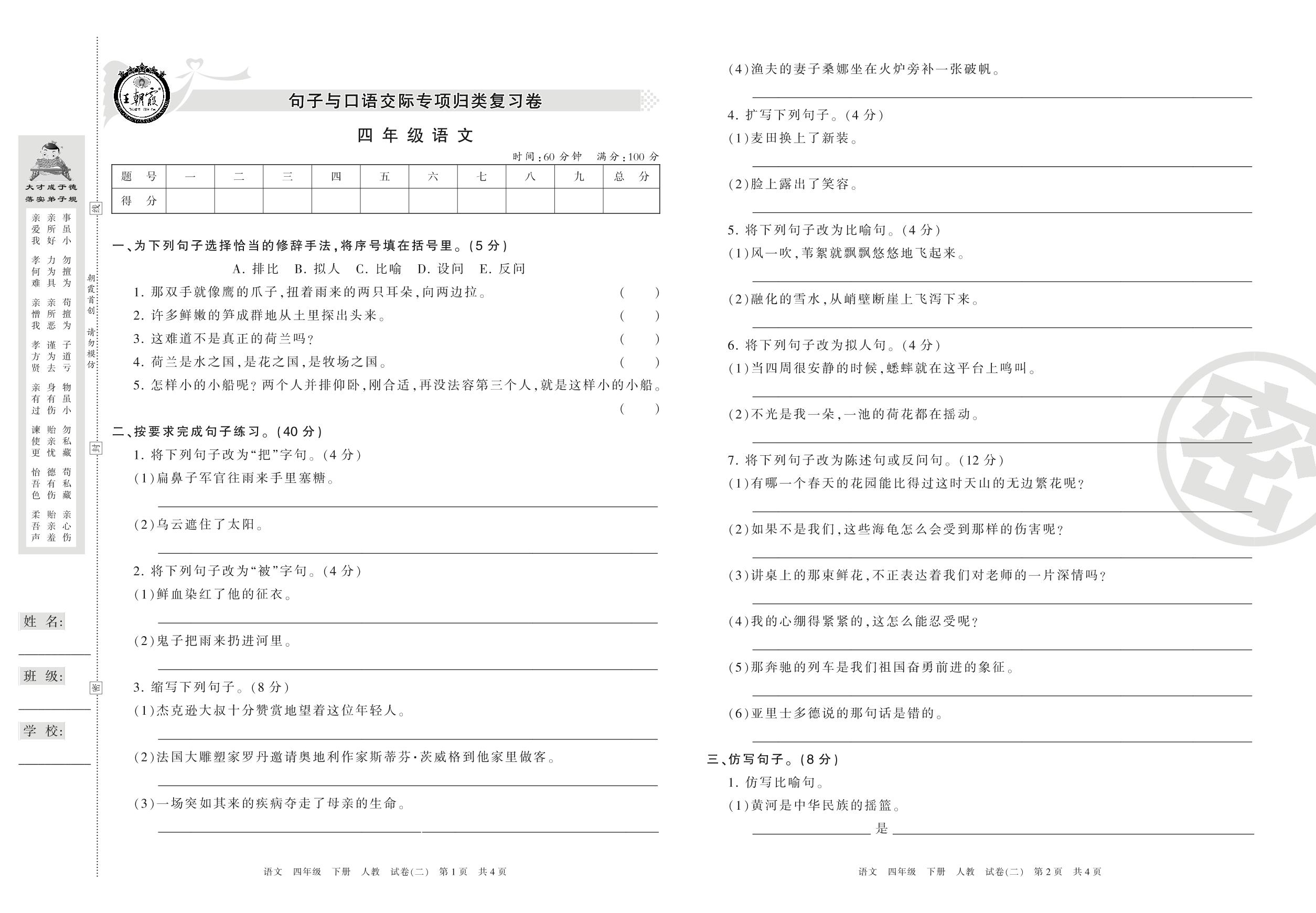 王朝霞期末专项卷四年级下册语文(人教版)_R210801211935【2】