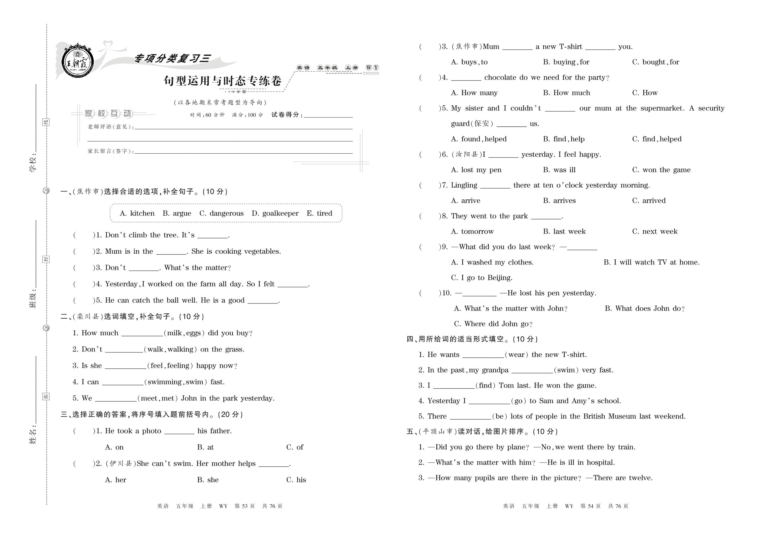 2021上册五年级英语外研版 句型运用与时态专练卷