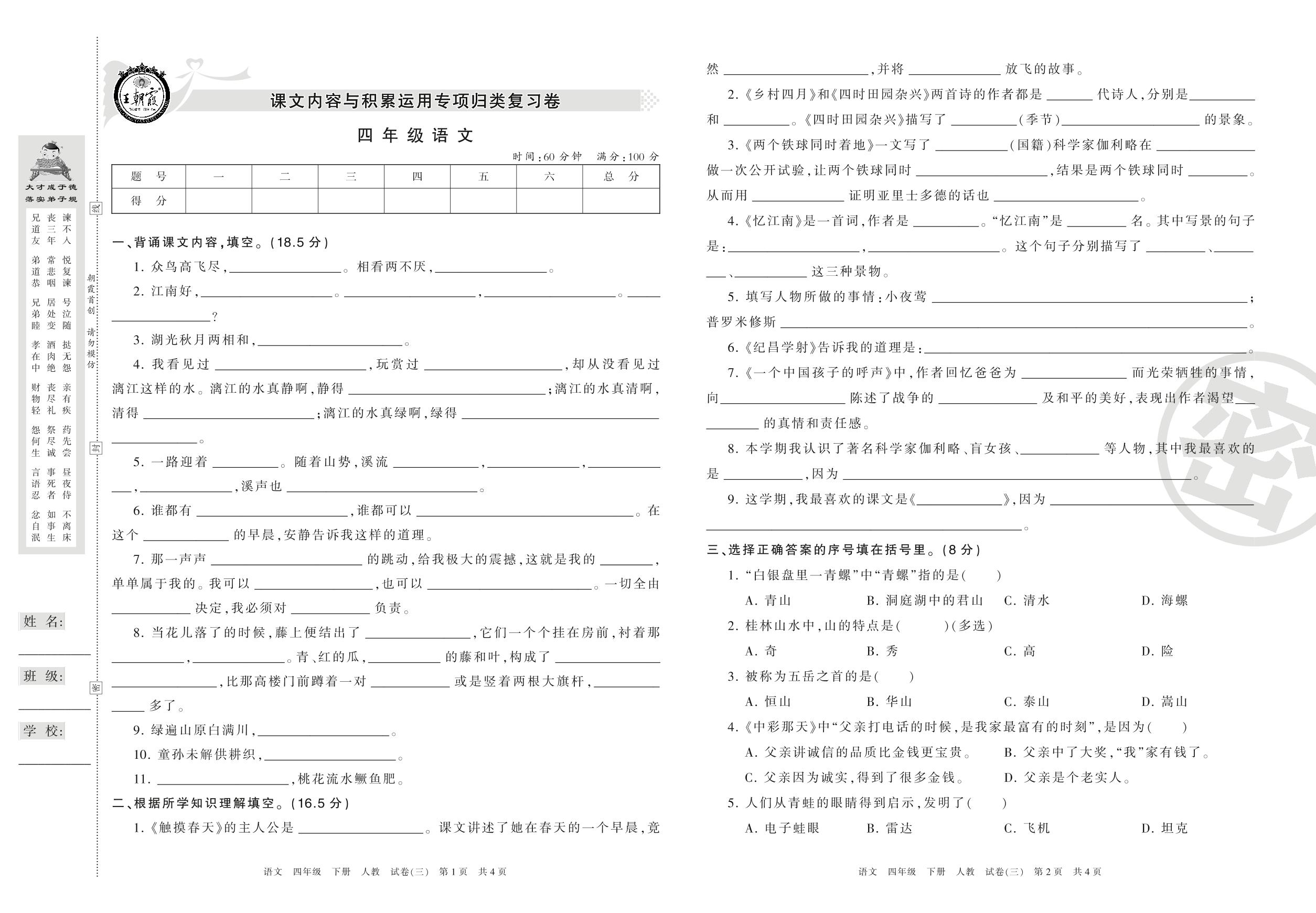 王朝霞期末专项卷四年级下册语文(人教版)_R210801211940【3】