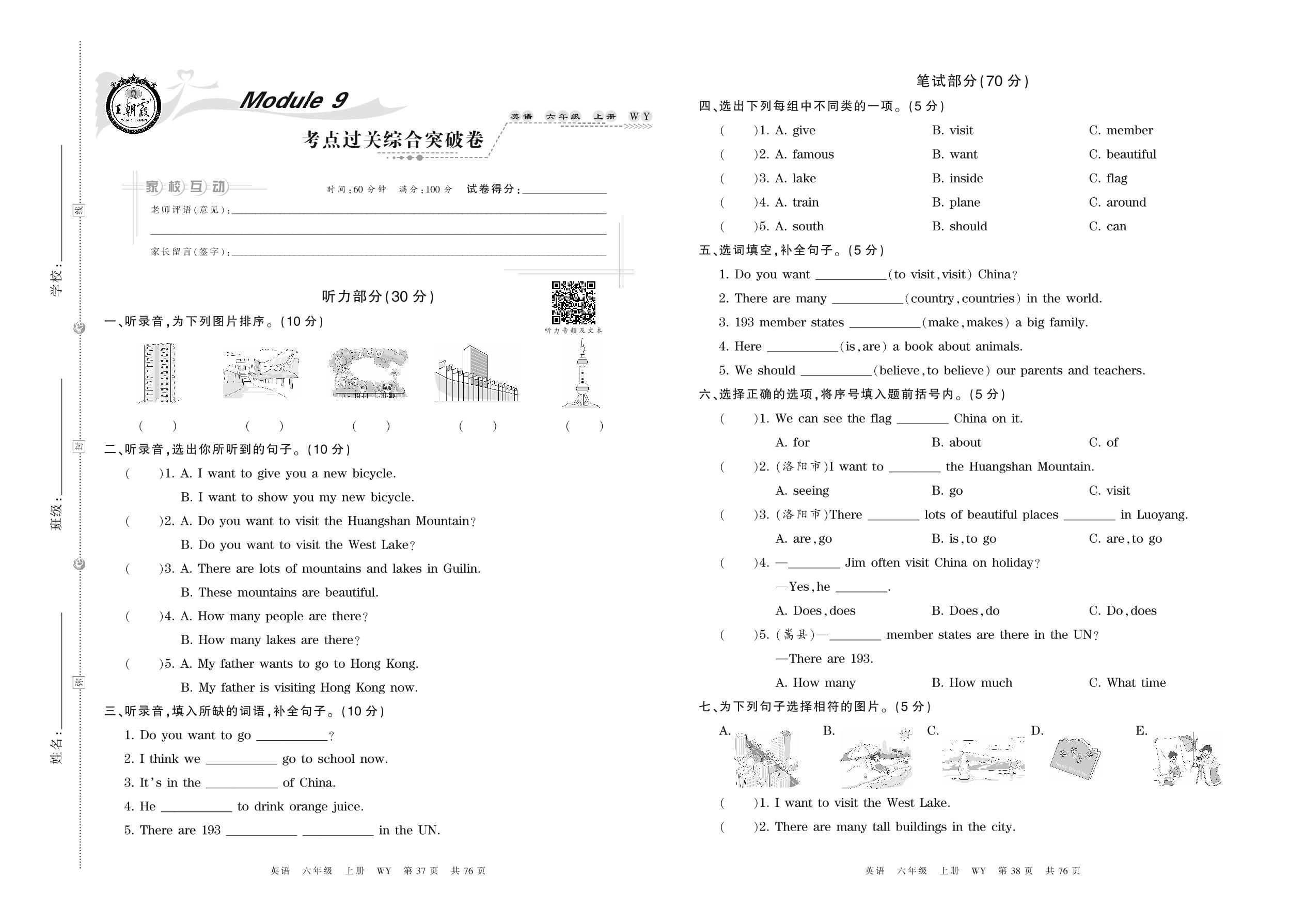 2021上册六年级英语外研版 Module 9 考点过关综合突破卷