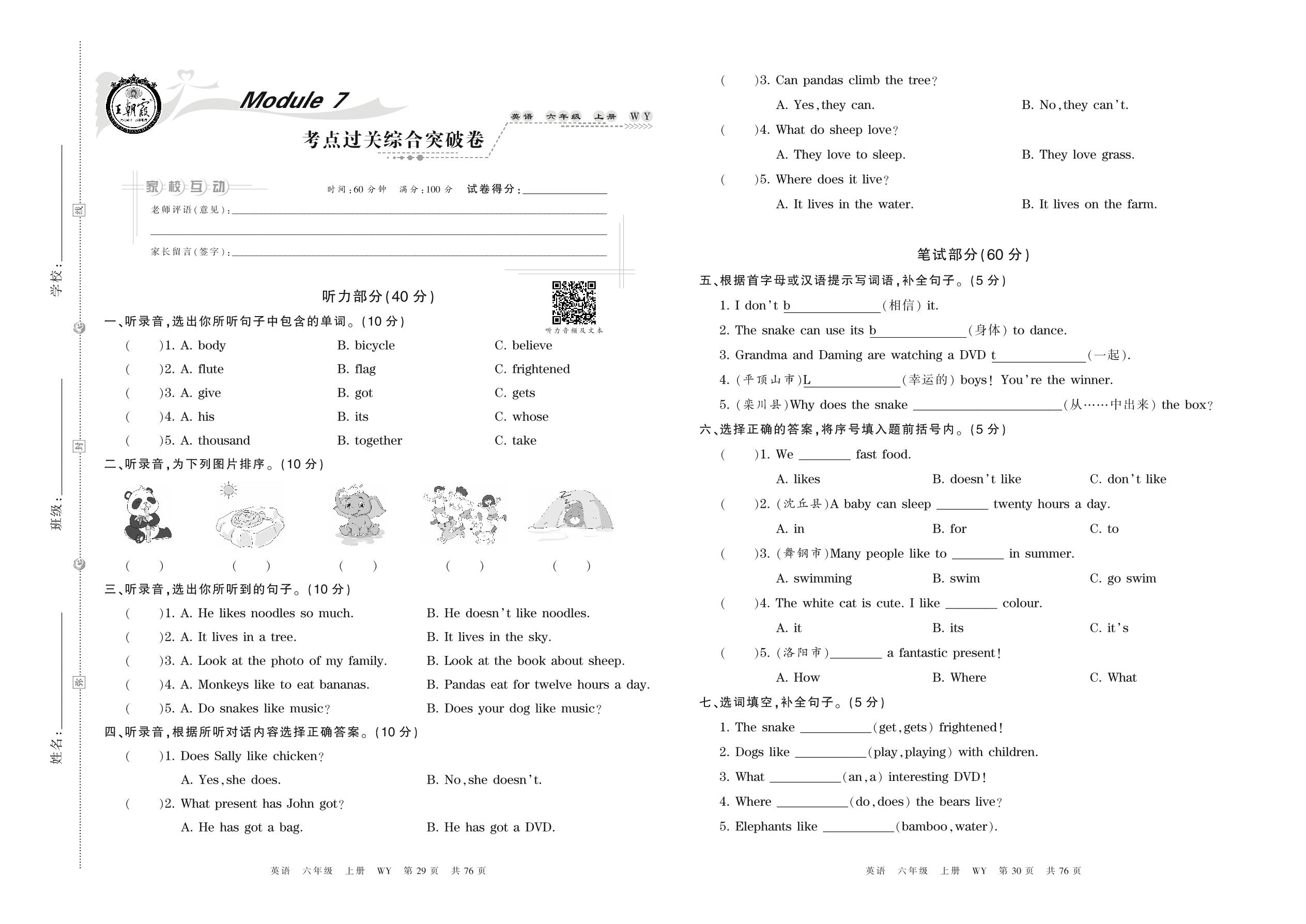 2021上册六年级英语外研版 Module 7 考点过关综合突破卷