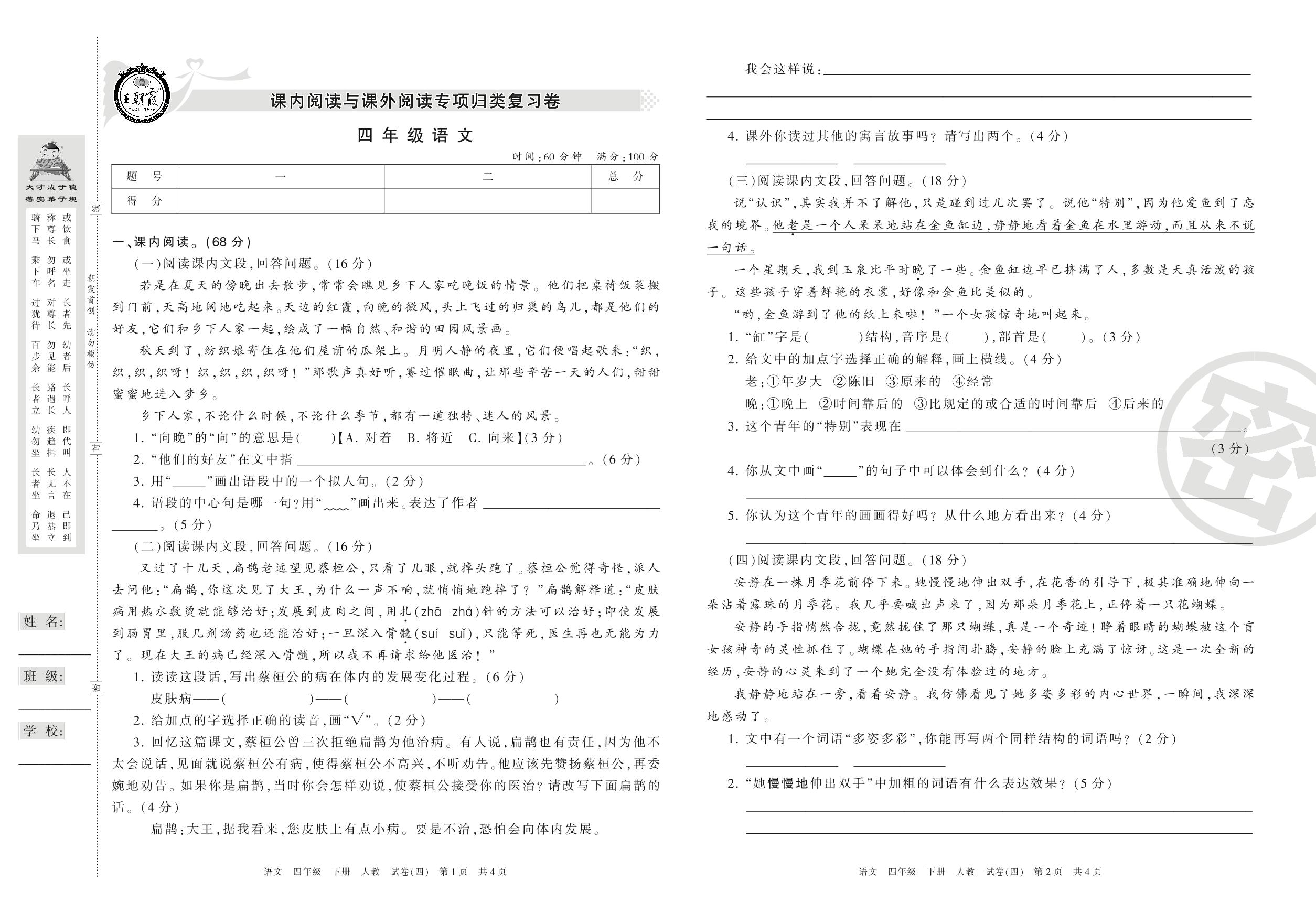王朝霞期末专项卷四年级下册语文(人教版)_R210801211946【4】