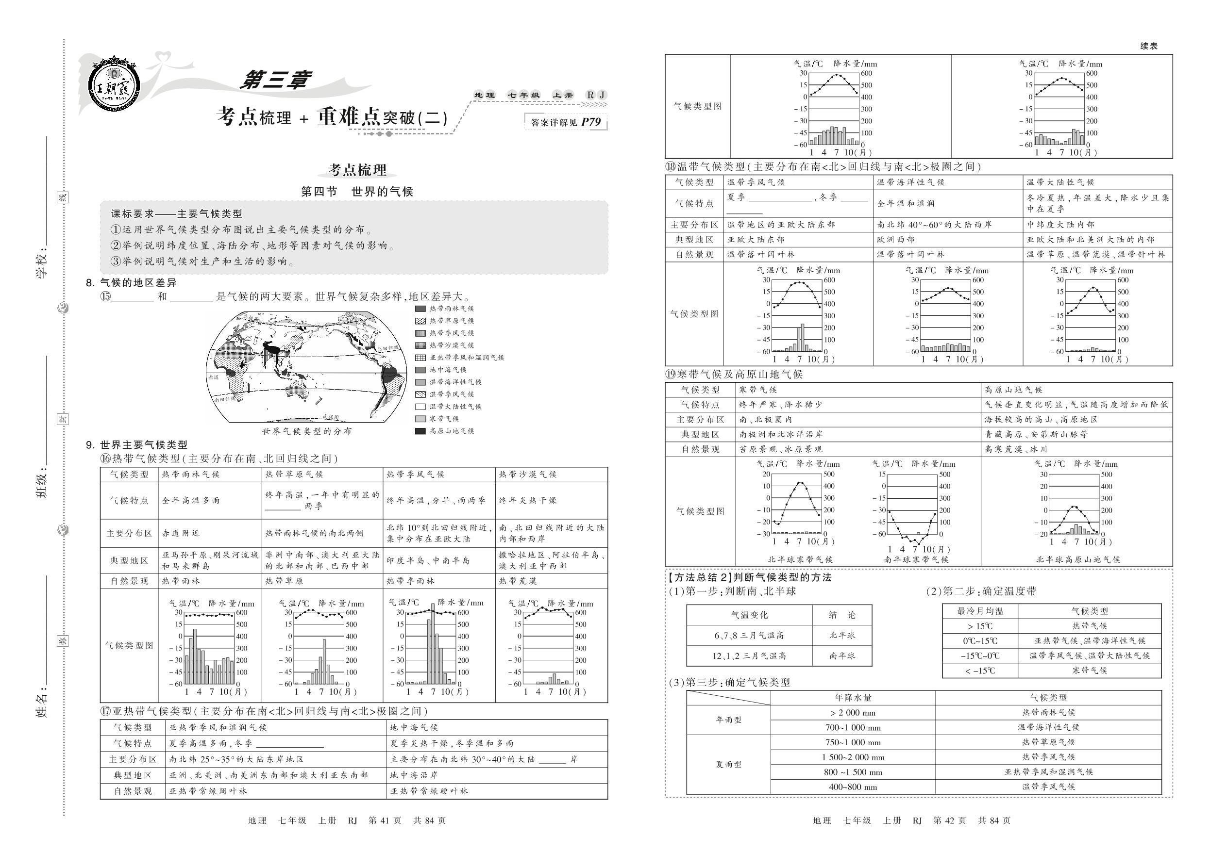 2021上册七年级地理人教版 第三章 考点梳理+重难点突破(二)
