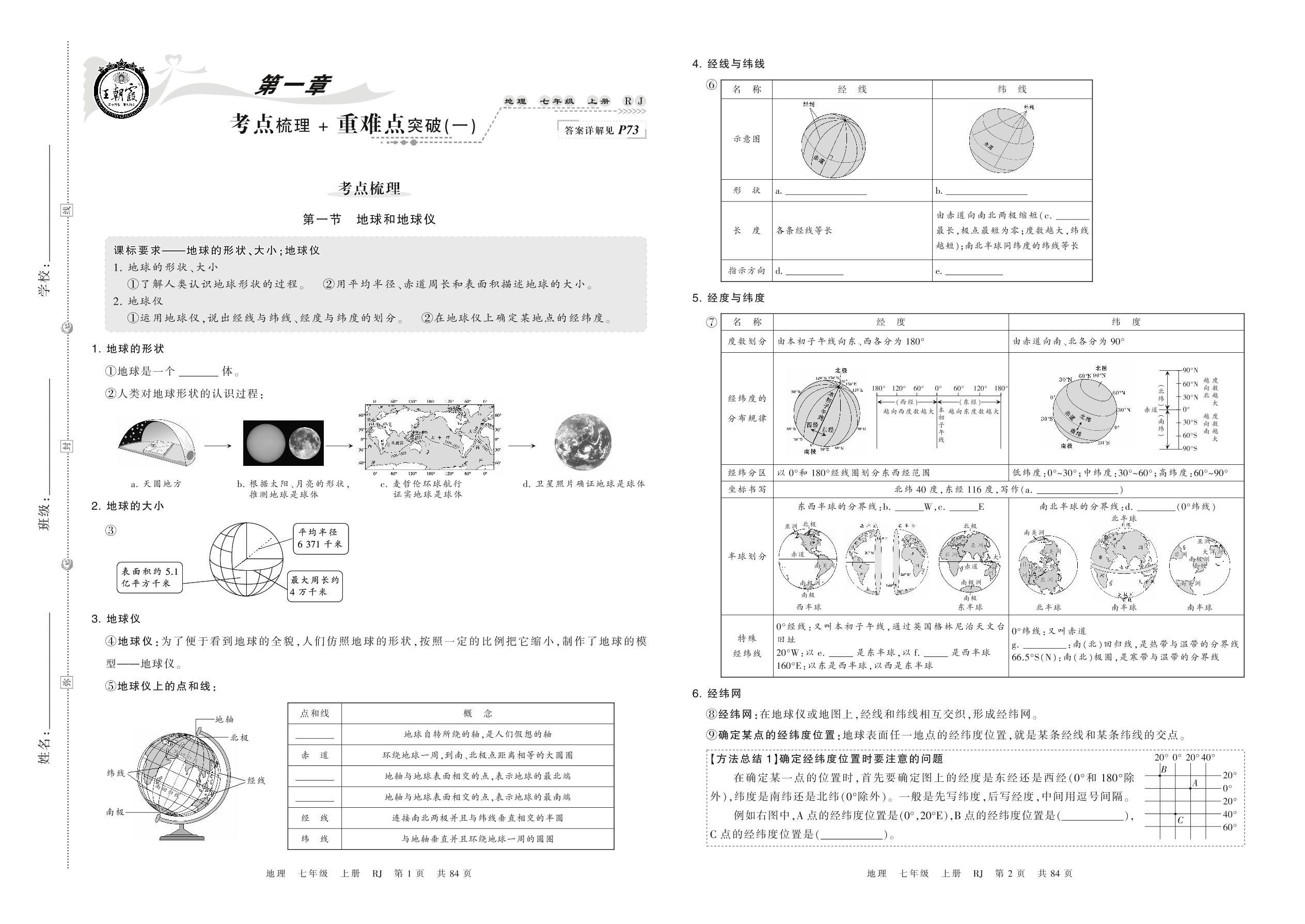 2021上册七年级地理人教版 第一章 考点梳理+重难点突破(一)