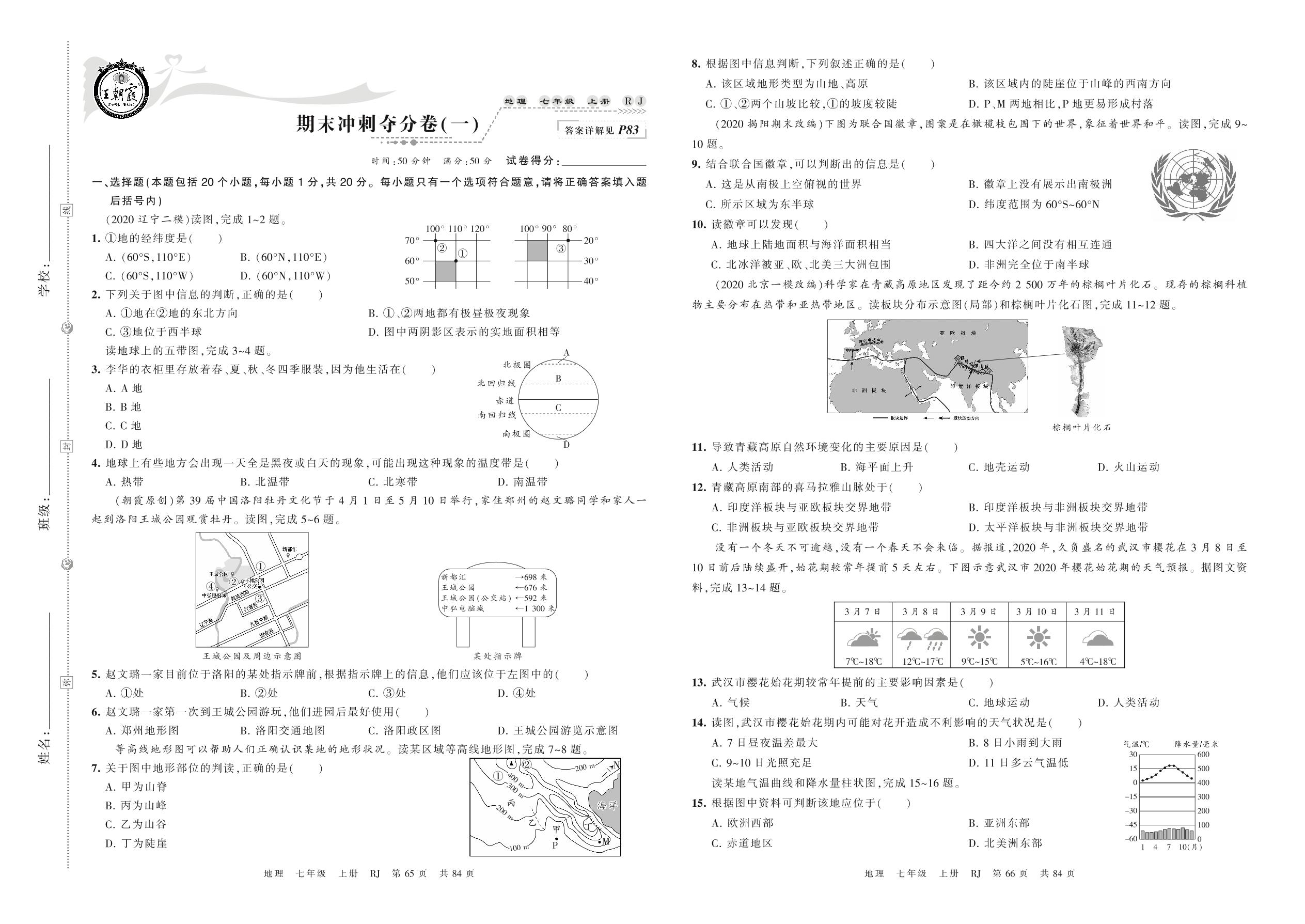 2021上册七年级地理人教版 期末冲刺夺分卷(一)