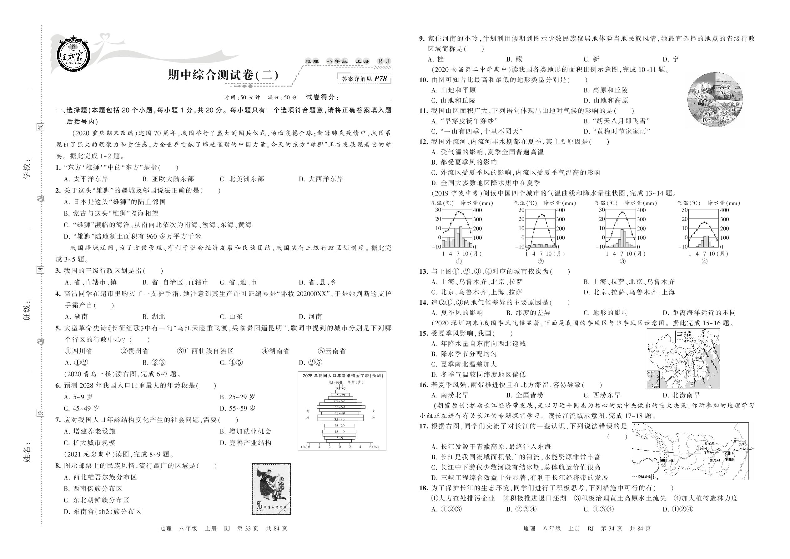 2021上册八年级地理人教版 期中综合测试卷(二)