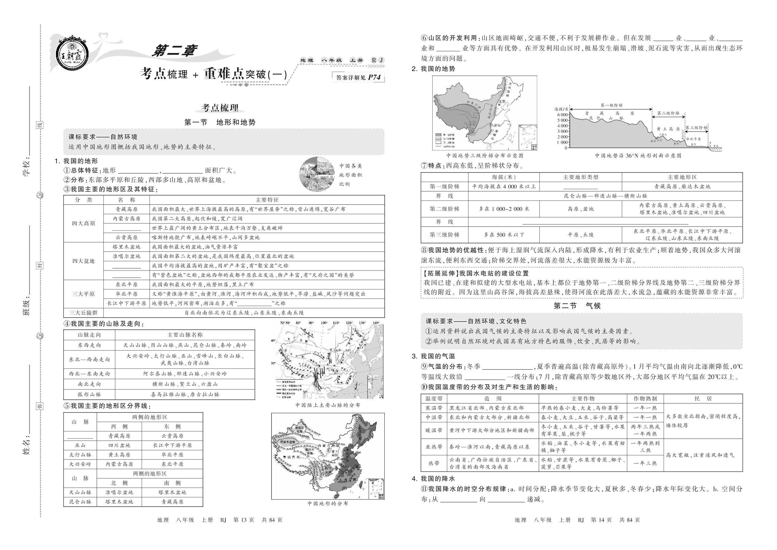 2021上册八年级地理人教版 第二章 考点梳理+重难点突破(一)