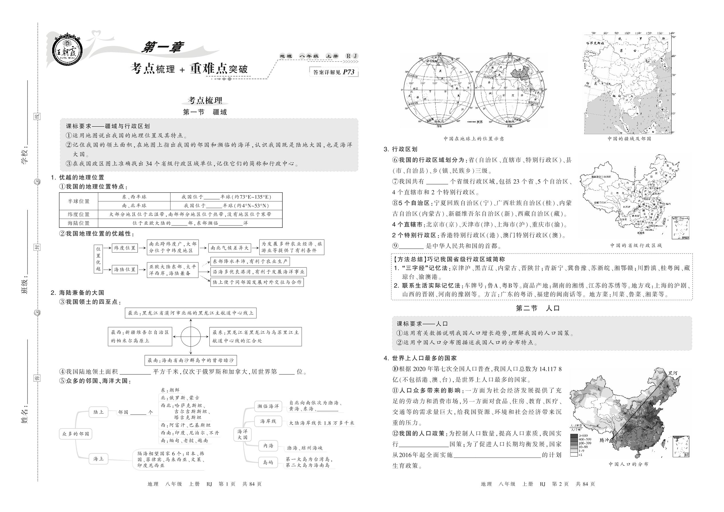 2021上册八年级地理人教版 第一章 考点梳理+重难点突破