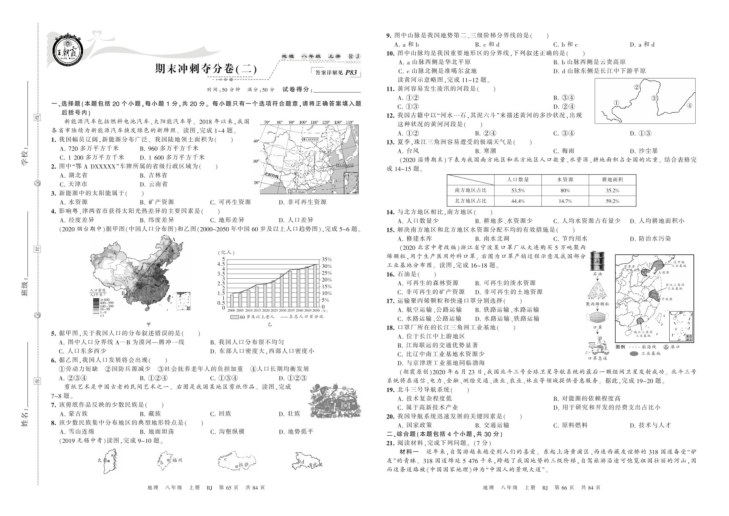 2021上册八年级地理人教版 期末冲刺夺分卷(二)