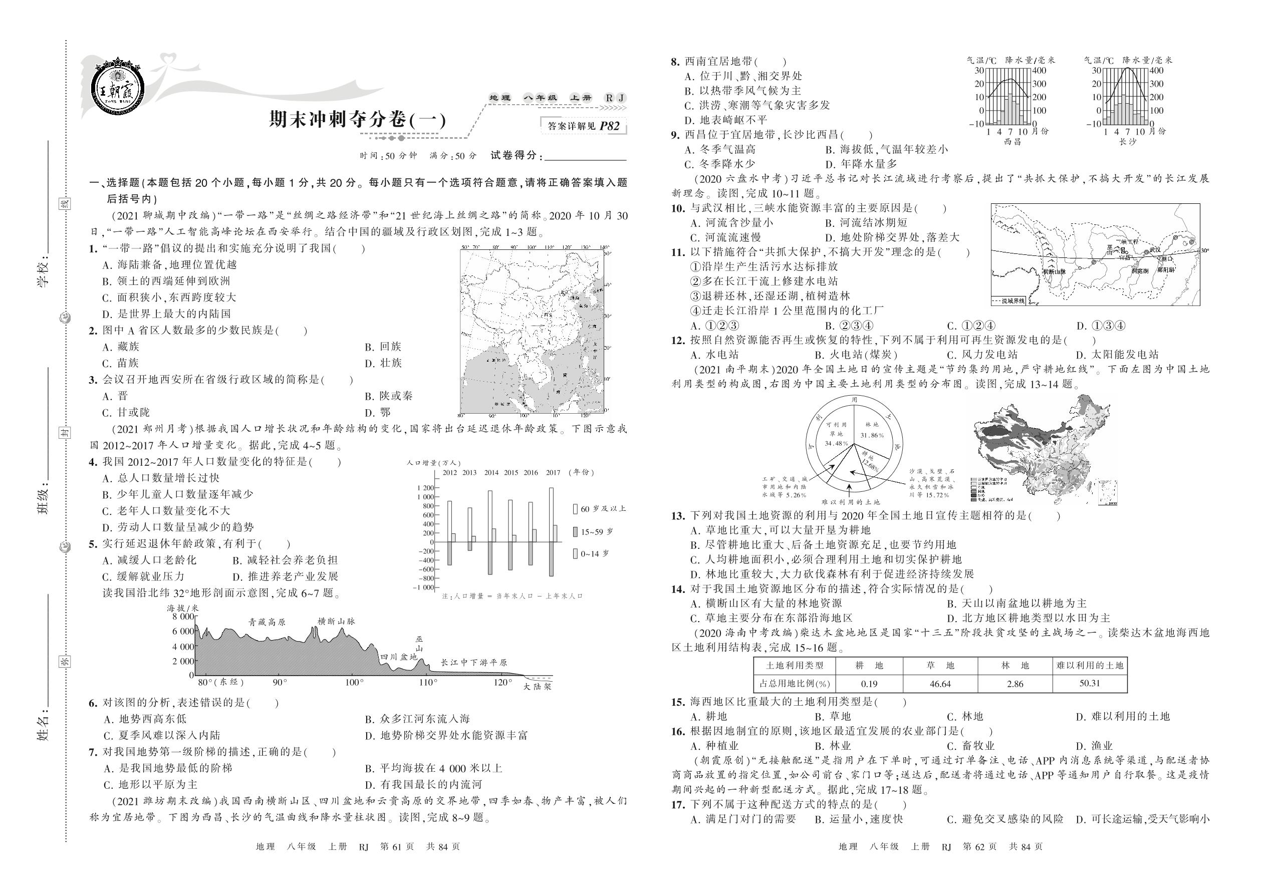 2021上册八年级地理人教版 期末冲刺夺分卷(一)