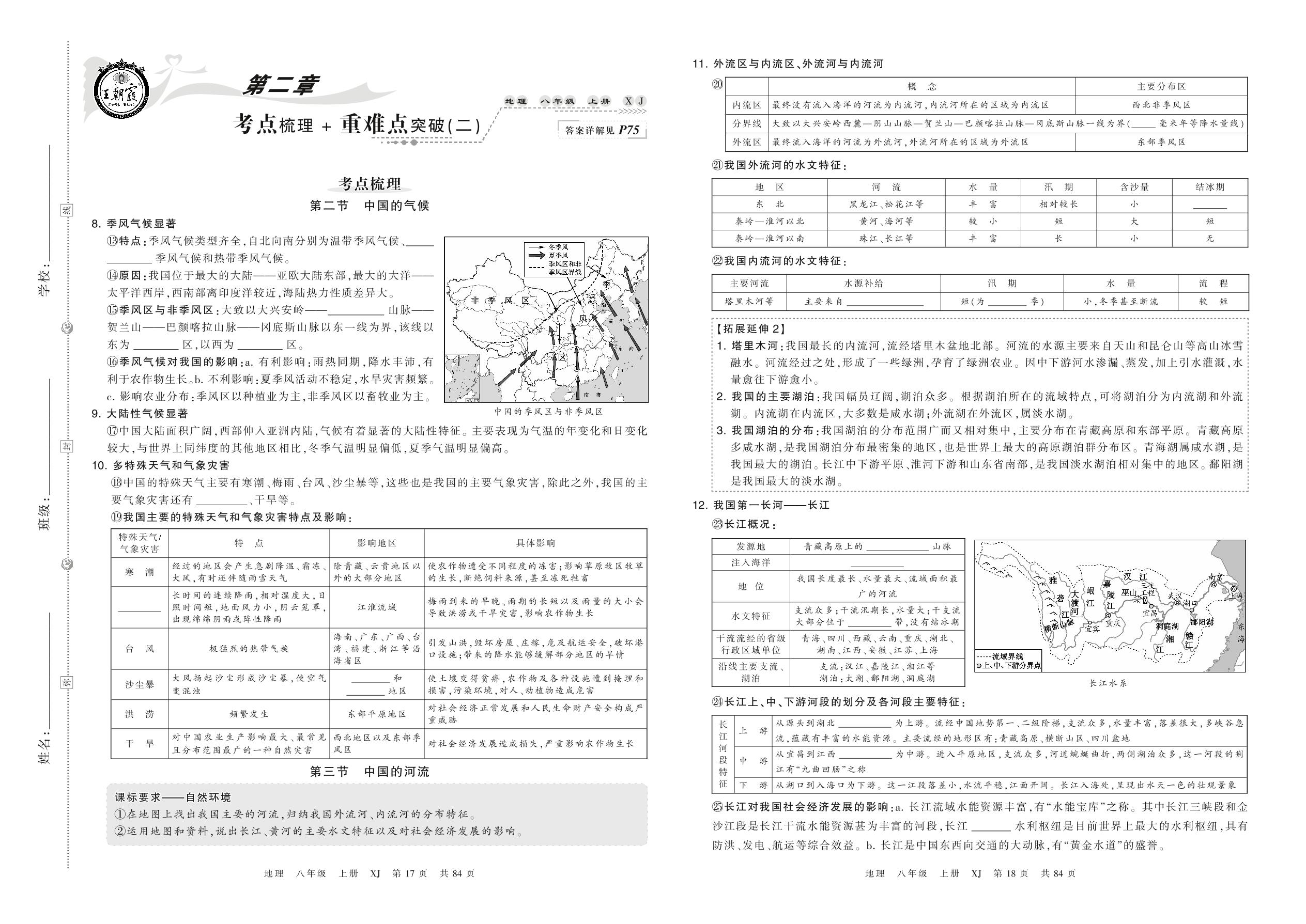 2021上册八年级地理湘教版 第二章 考点梳理+重难点突破(二)