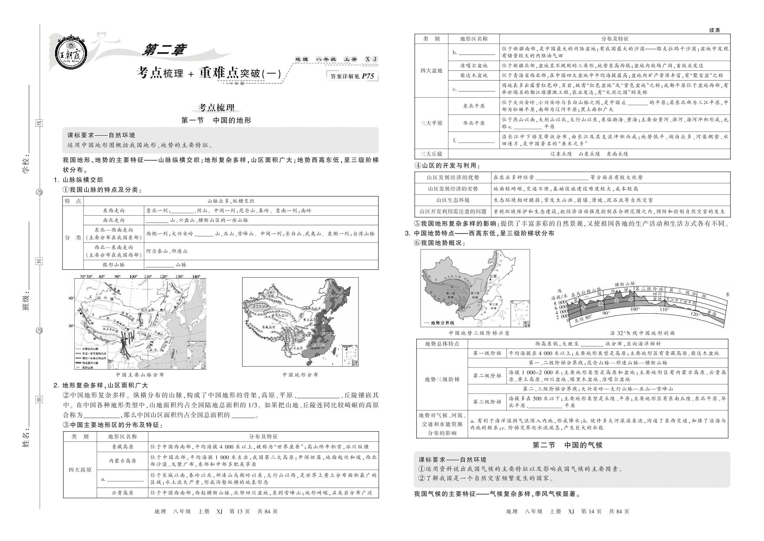 2021上册八年级地理湘教版 第二章 考点梳理+重难点突破(一)